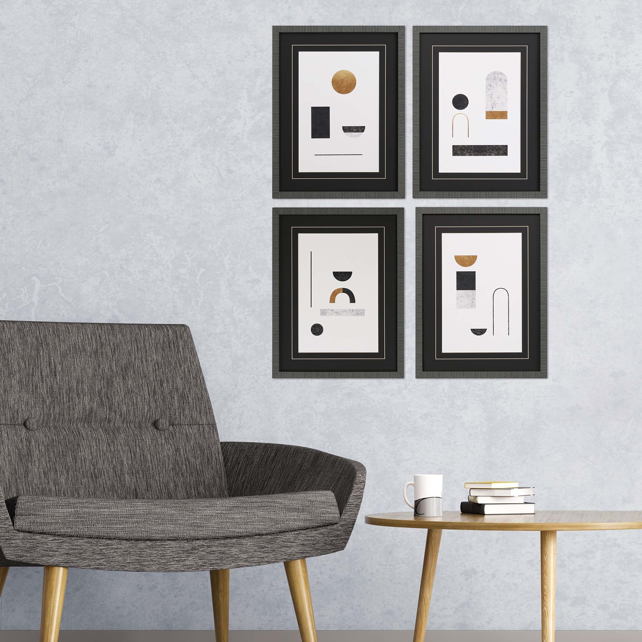 The geometric and abstract designs of the Abstract Luxe Wall Art Set of four adds a modern look to any room.