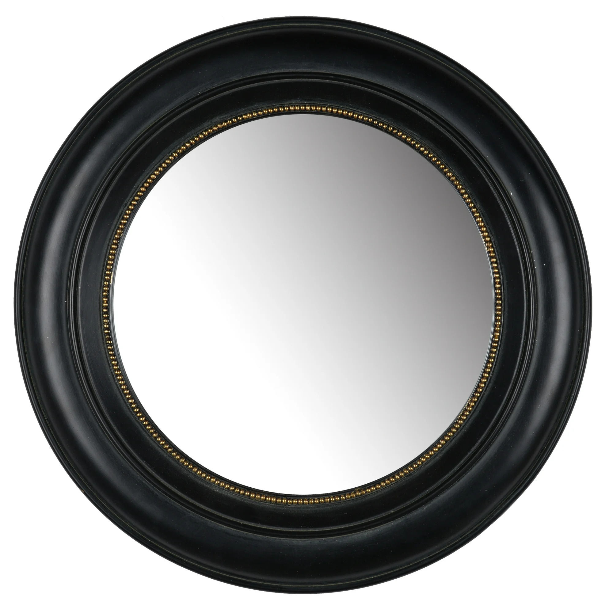 Made with a traditional style, this Accent Mirror features a wooden frame with a black finish and a ring of gold-tone metal around the center of the mirror adds a bit of a modern farmhouse style.