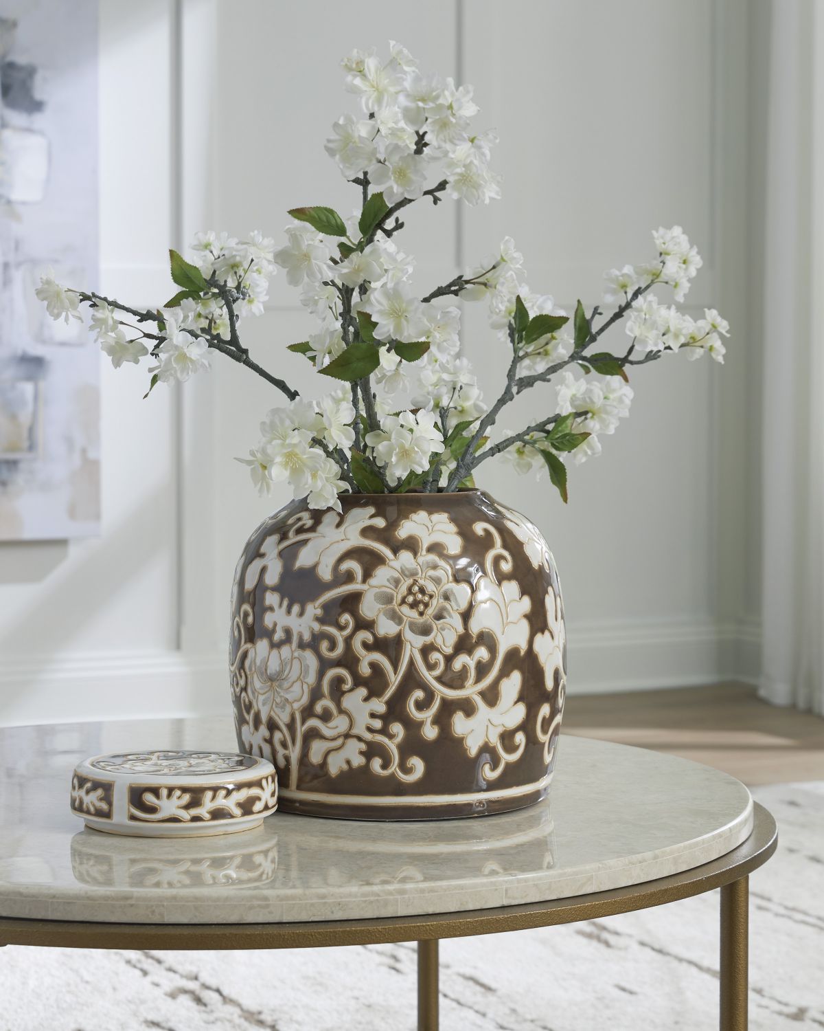 The sophistication of the delicate floral pattern of the Adalham jar will look stunning on your mantel.