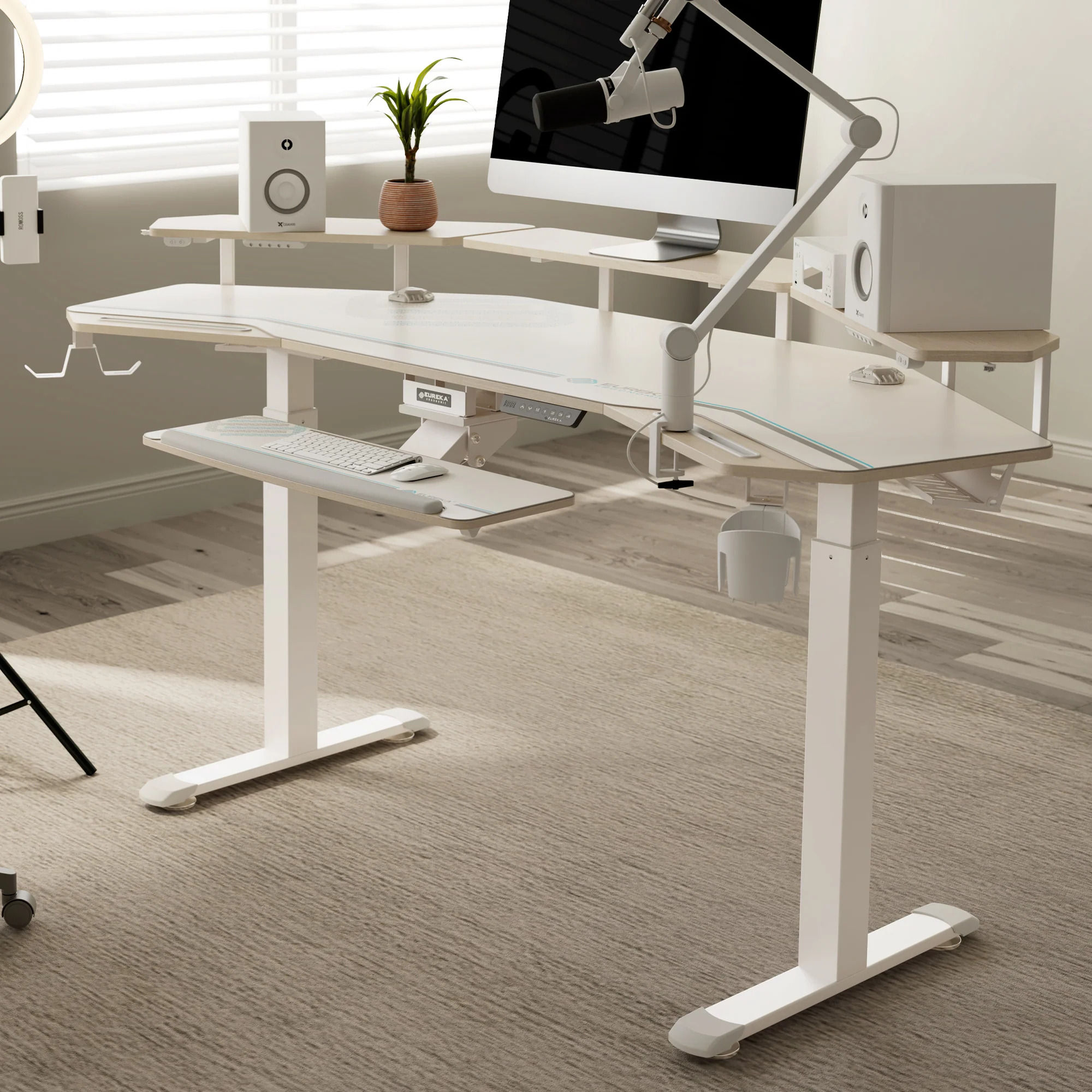 • 72" Ergonomic Wing-shaped Standing Desk: People who work or game for a long time will feel very comfortable as it provides flexible room for the abdomen and arms; The wing-shaped desk design makes it easy to reach and grab what you want as well; A gaming desk area of 72x23.6 inches accommodates your music, studio, gaming or live streaming equipment while you still have ample room to move—made of smooth carbon fiber texture, which is a material that can be heat-resistant and water-resistant.