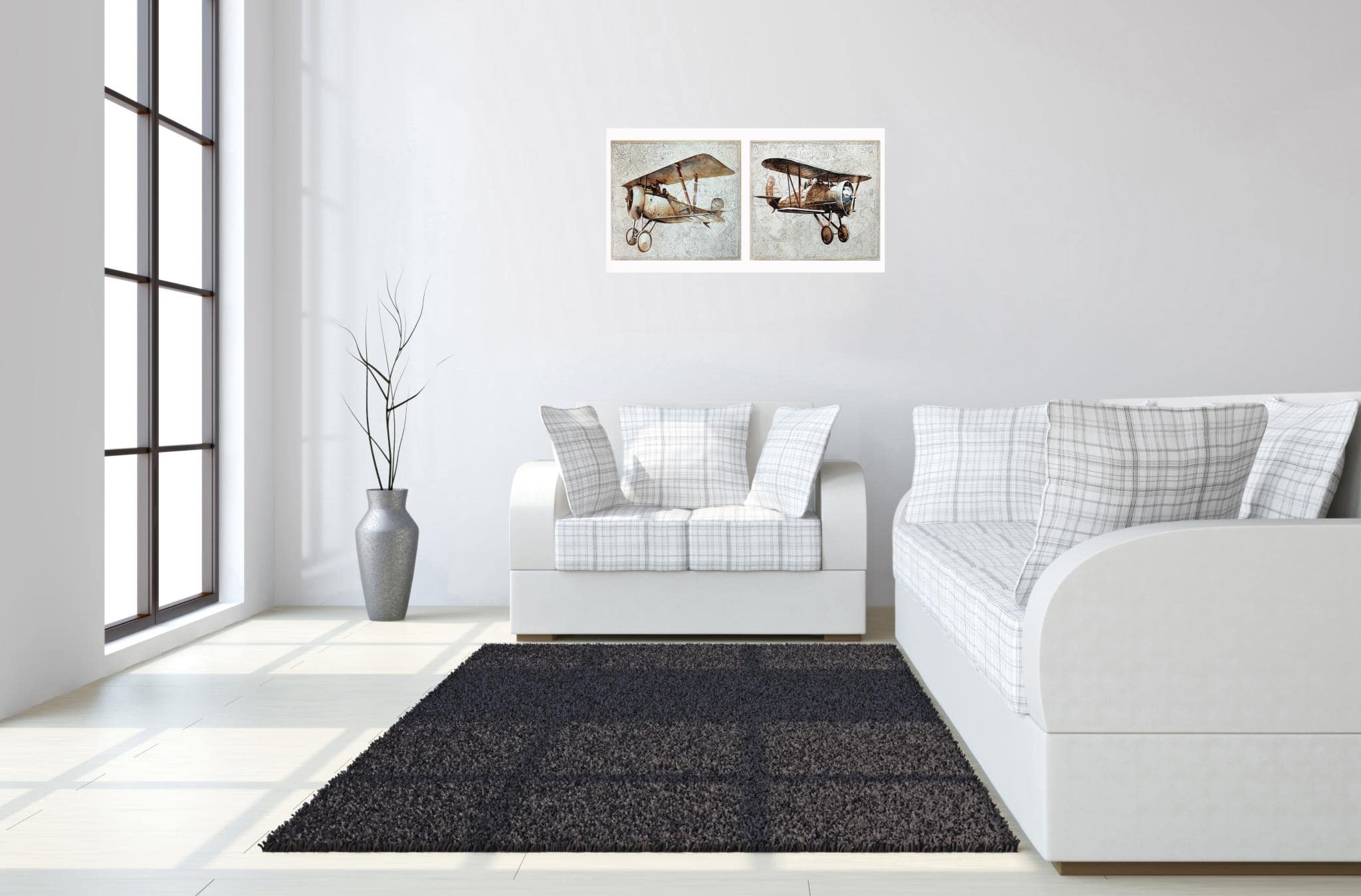 Contemporary styling meets the neutral tones of the Airplanes Wall Art Set of two.