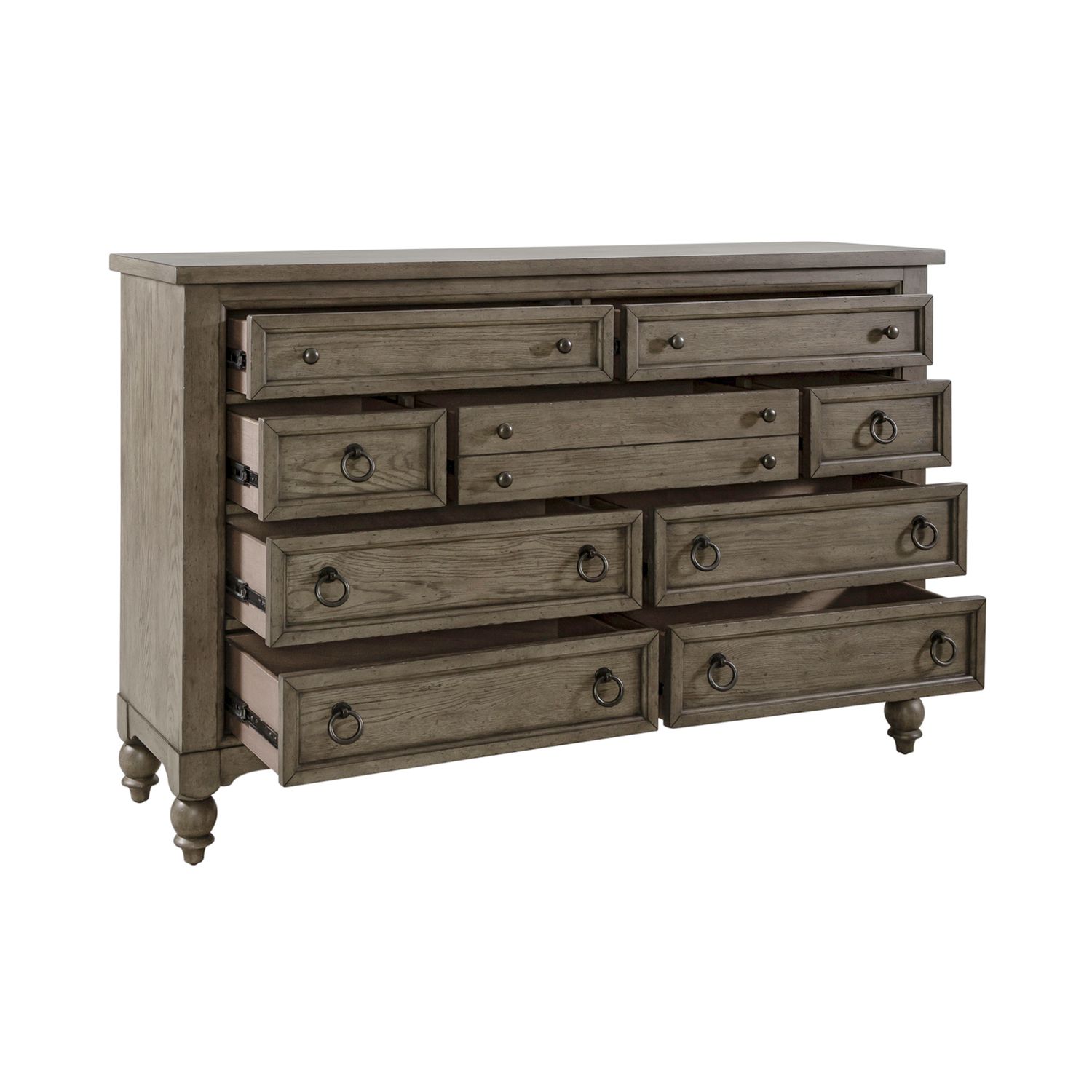 Crafted with style, the Americana Farmhouse dresser's drawers boast premium features and finishes.