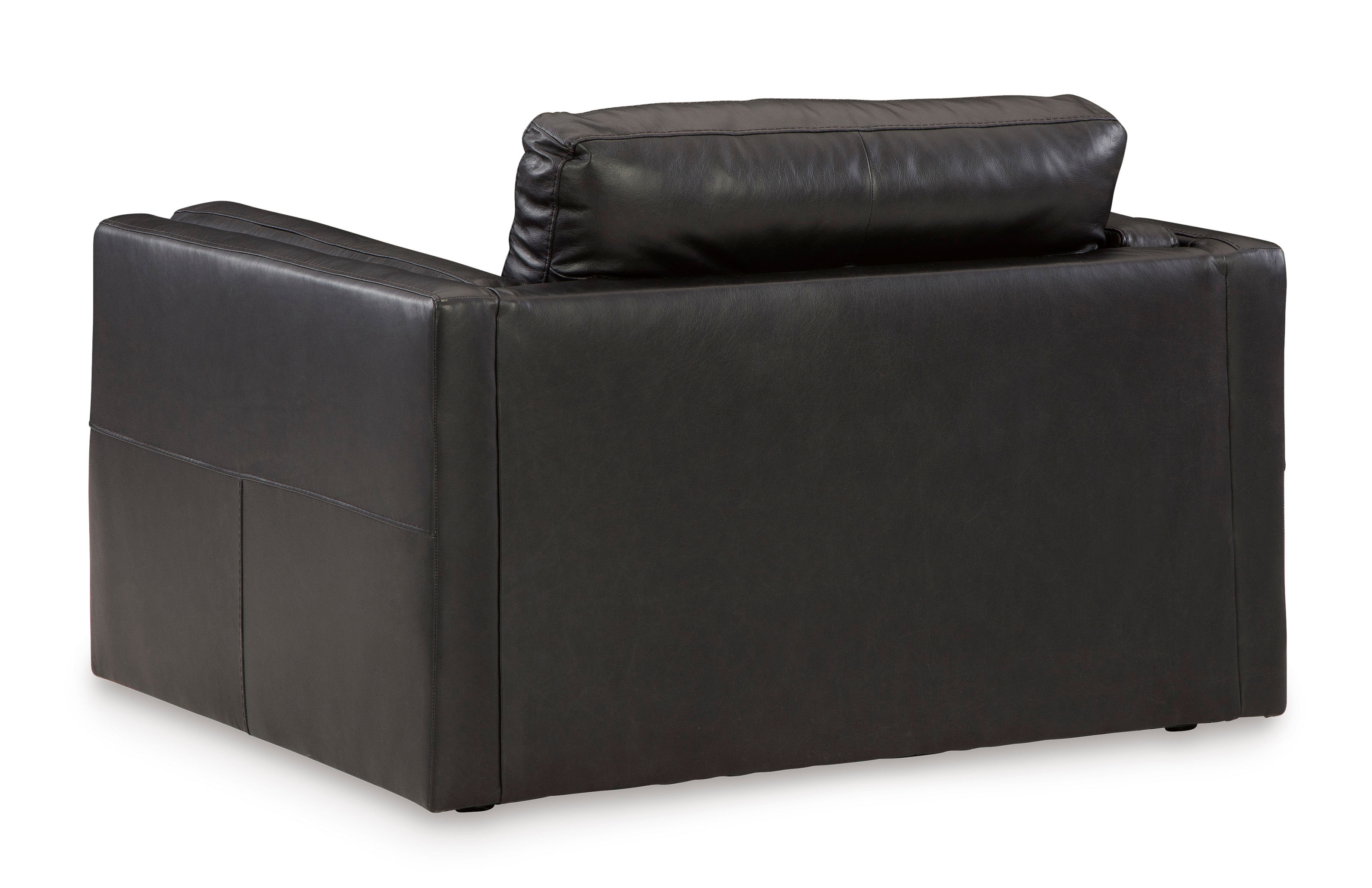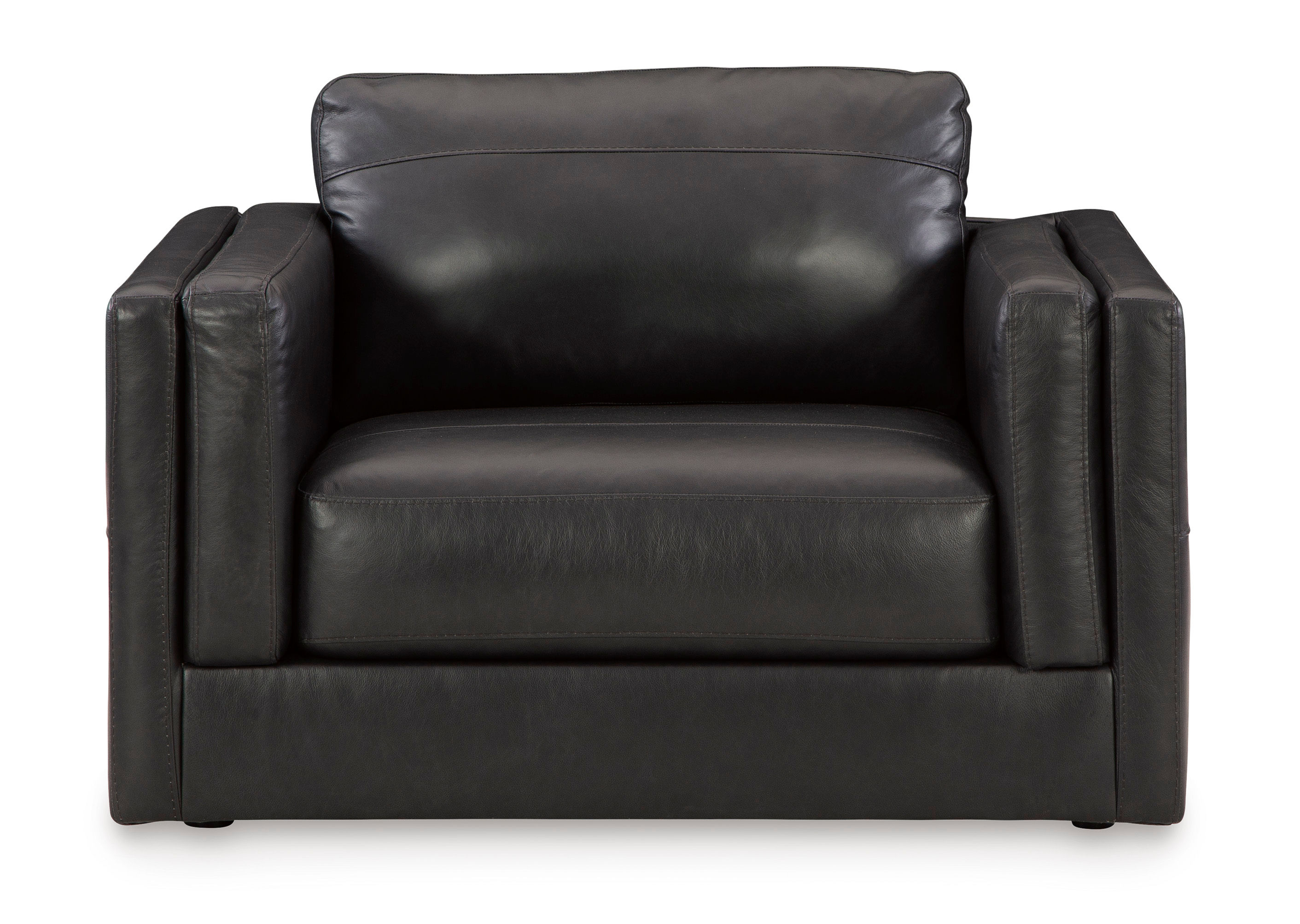 Keen on crisp, contemporary design? Adore the pleasure of leather? Look no further. The Amiata oversized chair satisfies on every level. Richly textured and decadently supple, the plush cushions are wrapped with combination leather and faux leather upholstery in an on-trend onyx tone. Sleek double-padded arms and a low, clean-lined profile complete this chair's simply chic appeal.