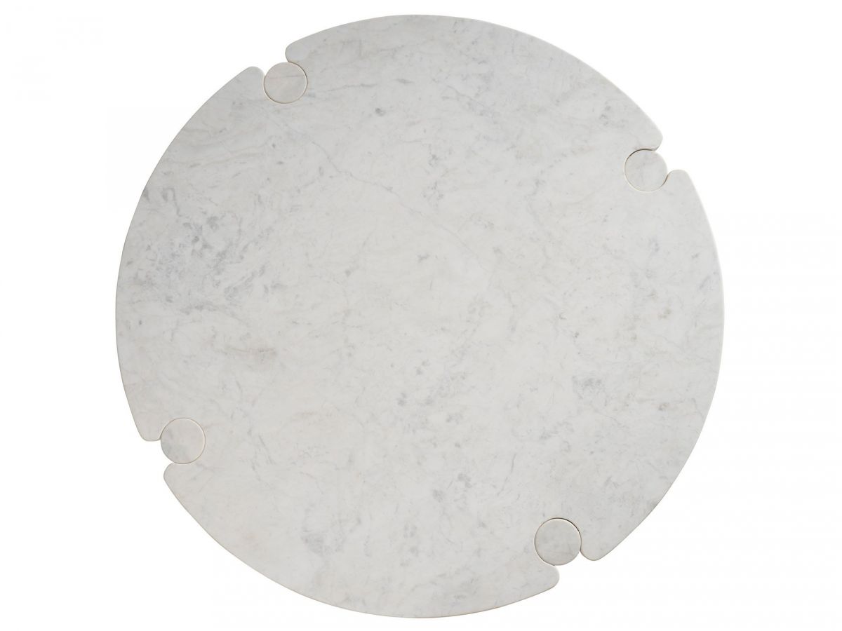 The Anniston Cocktail Table stands as a pinnacle of ultra-modern design with its round silhouette and a body entirely crafted from White Banswara, showcasing a captivating marbling effect. The contemporary interplay between the tabletop and its robust legs adds a sculptural element, making this table a striking centerpiece in any modern living space.