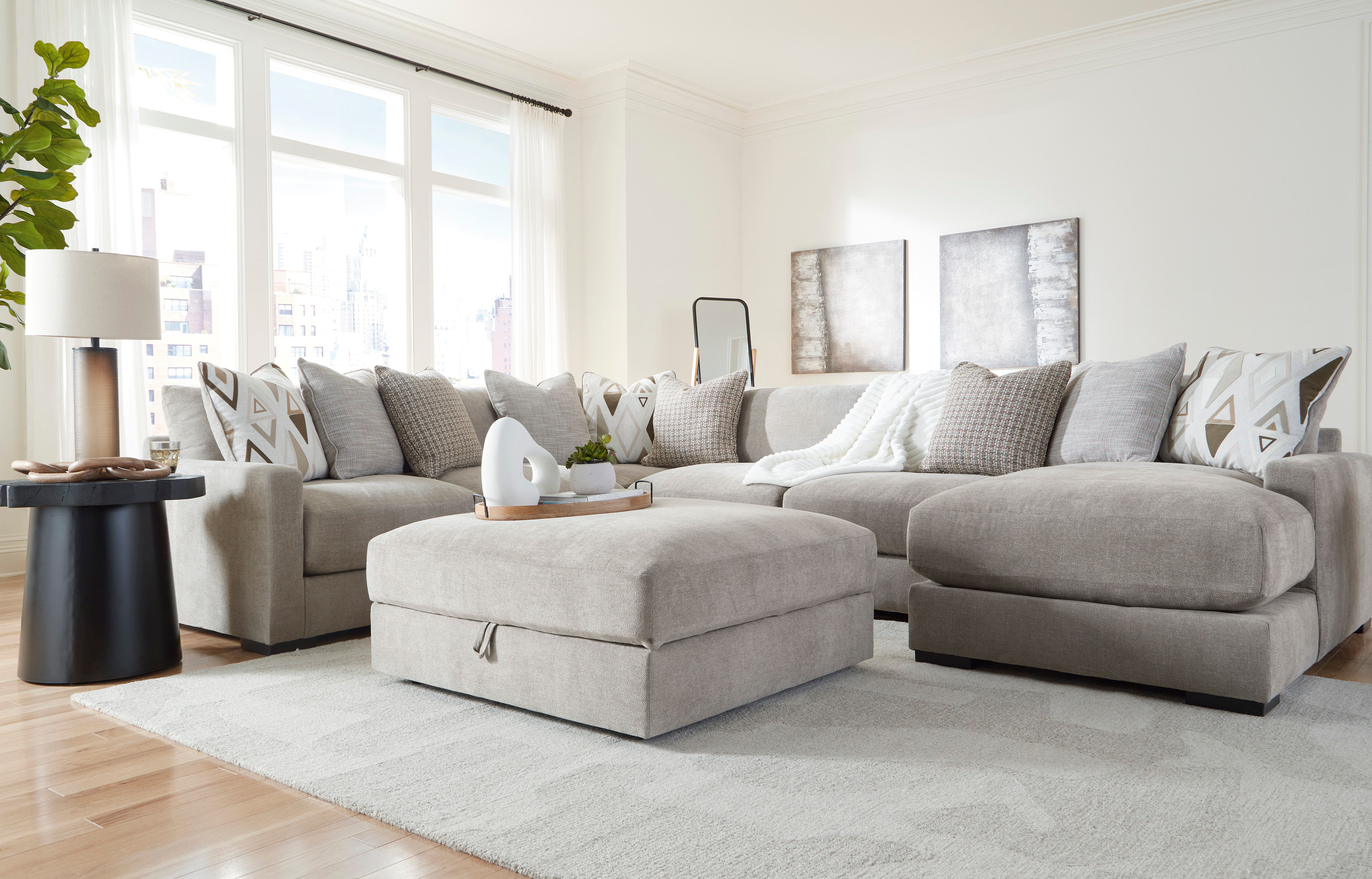 Functional, contemporary comfort. This ottoman with storage adapts effortlessly to your living room needs. Thanks to its locking casters, you can rearrange the piece as you please, whether it’s for family TV time, hosting guests or a simple style refresh. Keep throw blankets and other essentials on hand with built-in storage space. Adding to its versatility: a goes-with-anything neutral hue. And this ottoman keeps your relaxation a priority, with an ultra-plush feather blend cushion rounding out the upscale design.