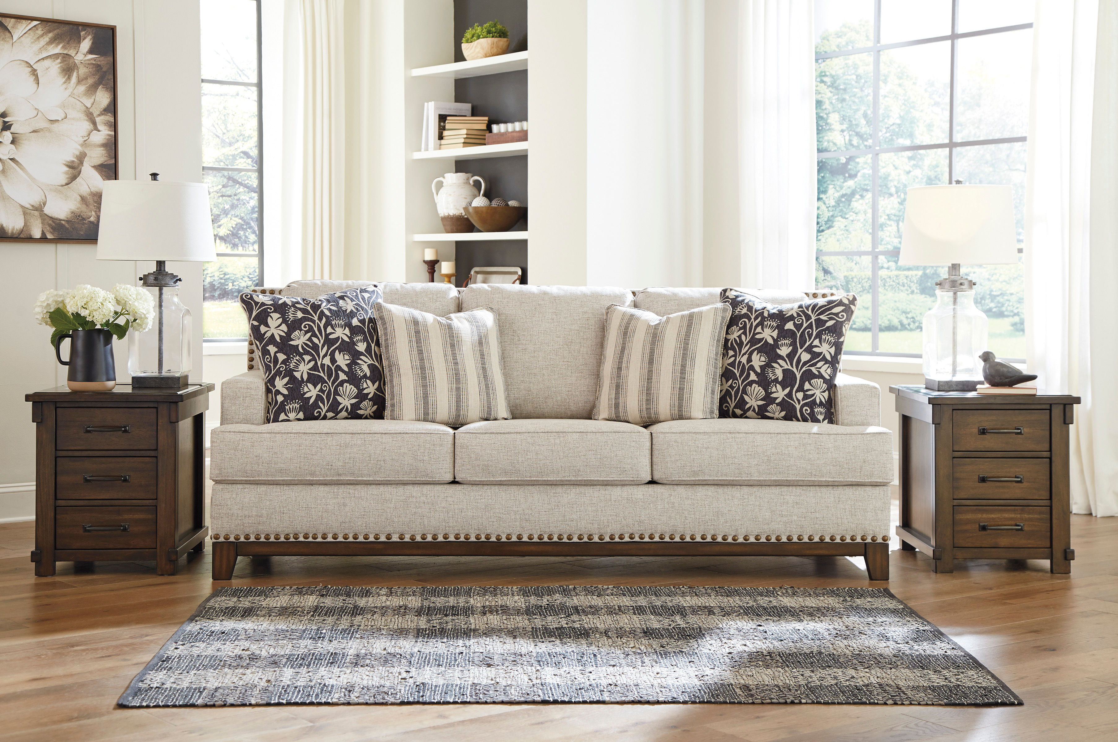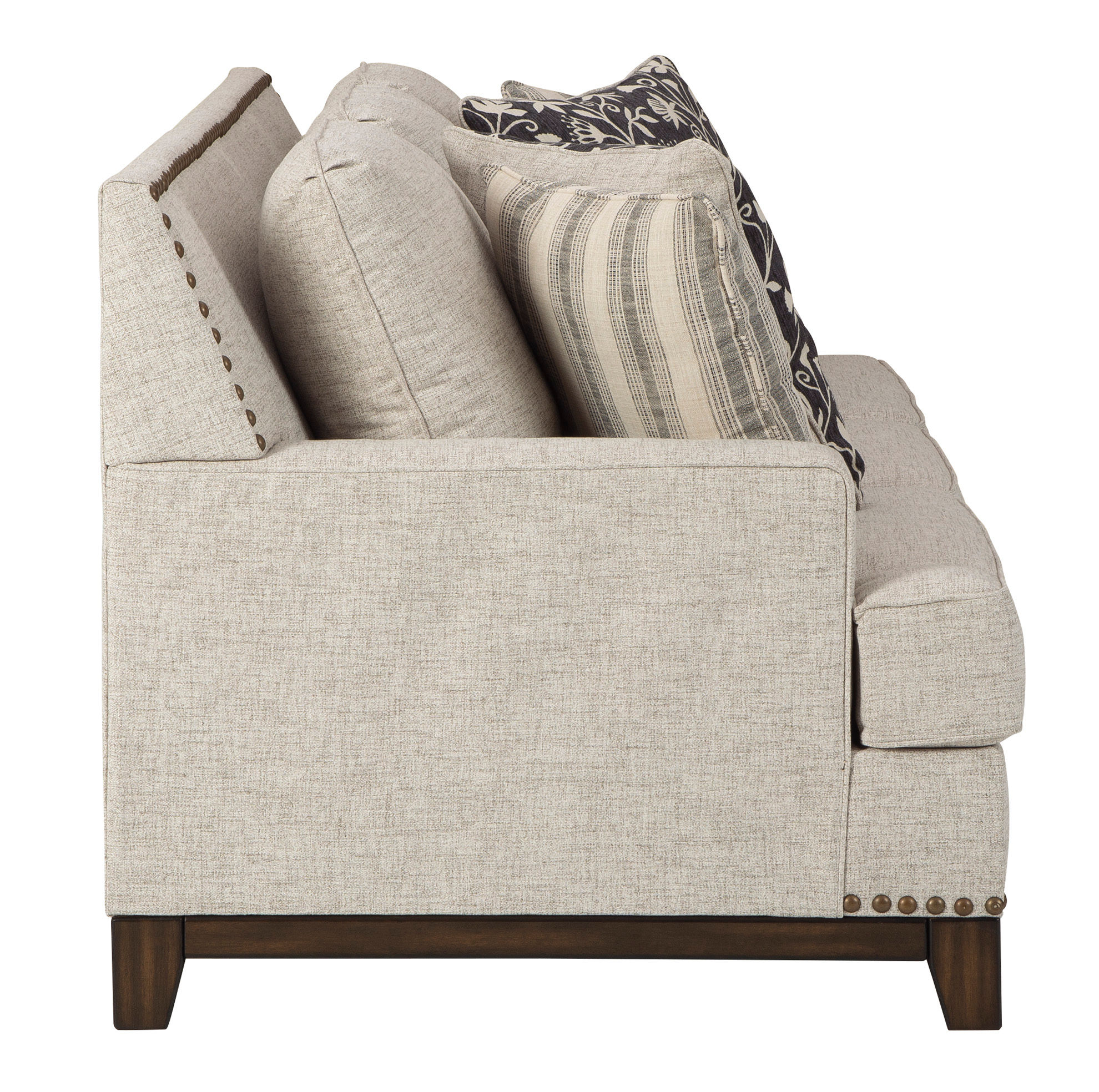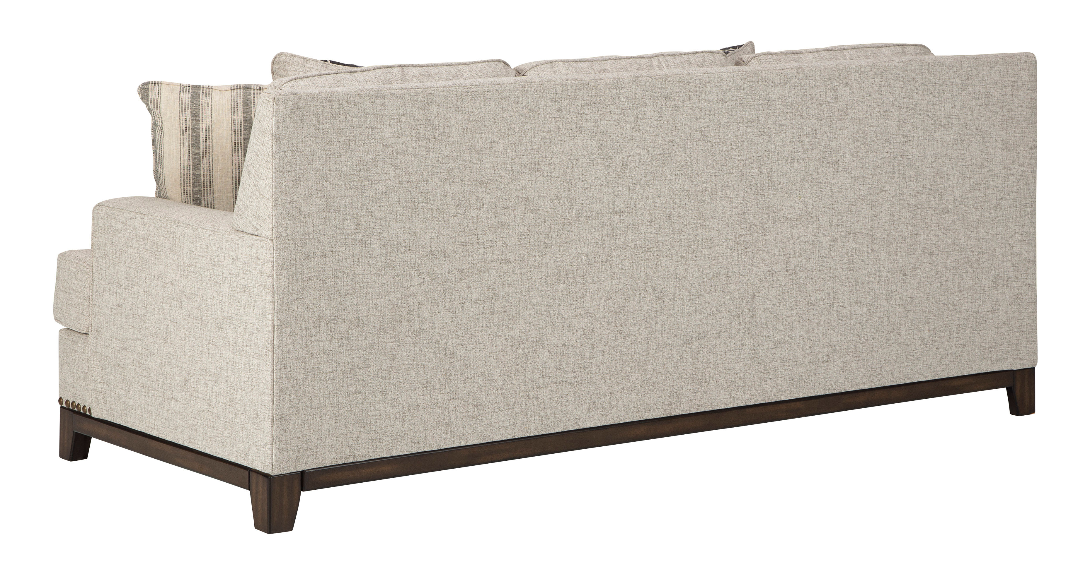 With its uniquely chic blend of elements, the Ballina sofa breaks the rules in a beautiful way. Crisp and clean—with just a hint of classic flair—this designer sofa stands out with its sleek track arms and prominent nailhead trim punctuating the linear profile. Truly setting this contemporary sofa apart—an exposed walnut-tone rail for a high-end, furniture gallery aesthetic. Reversible cushions and decorative pillows in relaxed, muted hues make this sofa befitting everything from modern farmhouse to urban chic spaces.