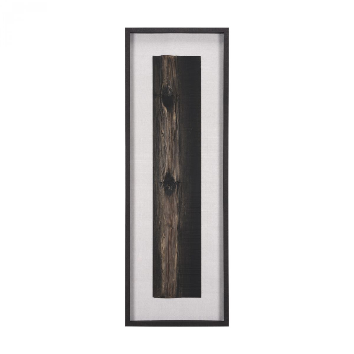 "Bamboo Relief I" by Studio M is a striking original artwork inspired by the natural rhythm and refined strength of bamboo. This tall vertical composition captures the organic character of wood through a richly textured, handcrafted design. Raised detailing enhances the depth and imparts a quiet sense of movement, drawing the eye along its earthy surface. A palette of deep browns and charred black tones adds warmth and grounding presence. Elegantly framed in a dark wood-look frame and encased under protective glass, the piece offers a sophisticated contrast that accentuates its dimensional beauty - perfect for adding natural elegance to any interior.