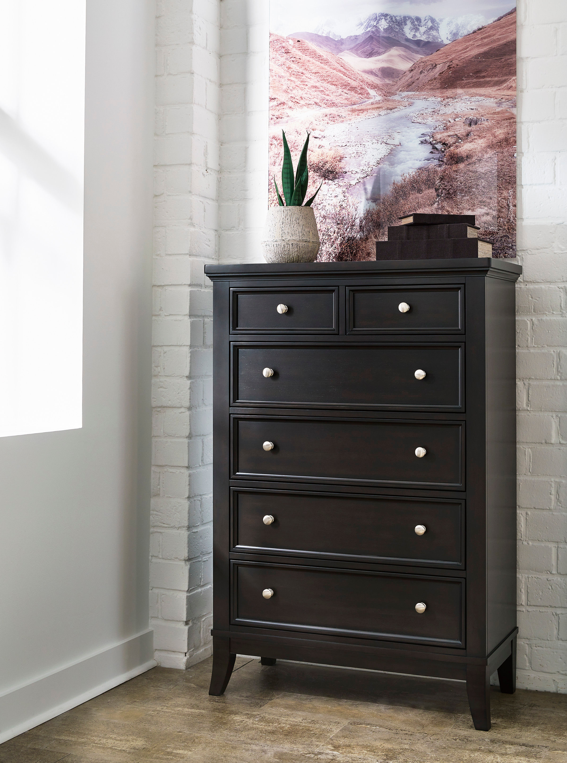 The Bambori chest of drawers features a simple design that effortlessly coordinates with different interiors. Its clean lines and rich dark brown finish create a classic, contemporary look, while smooth-gliding drawers provide plenty of room for a well-organized wardrobe. Let the blend of sophistication and easy style transform your dreams into reality.