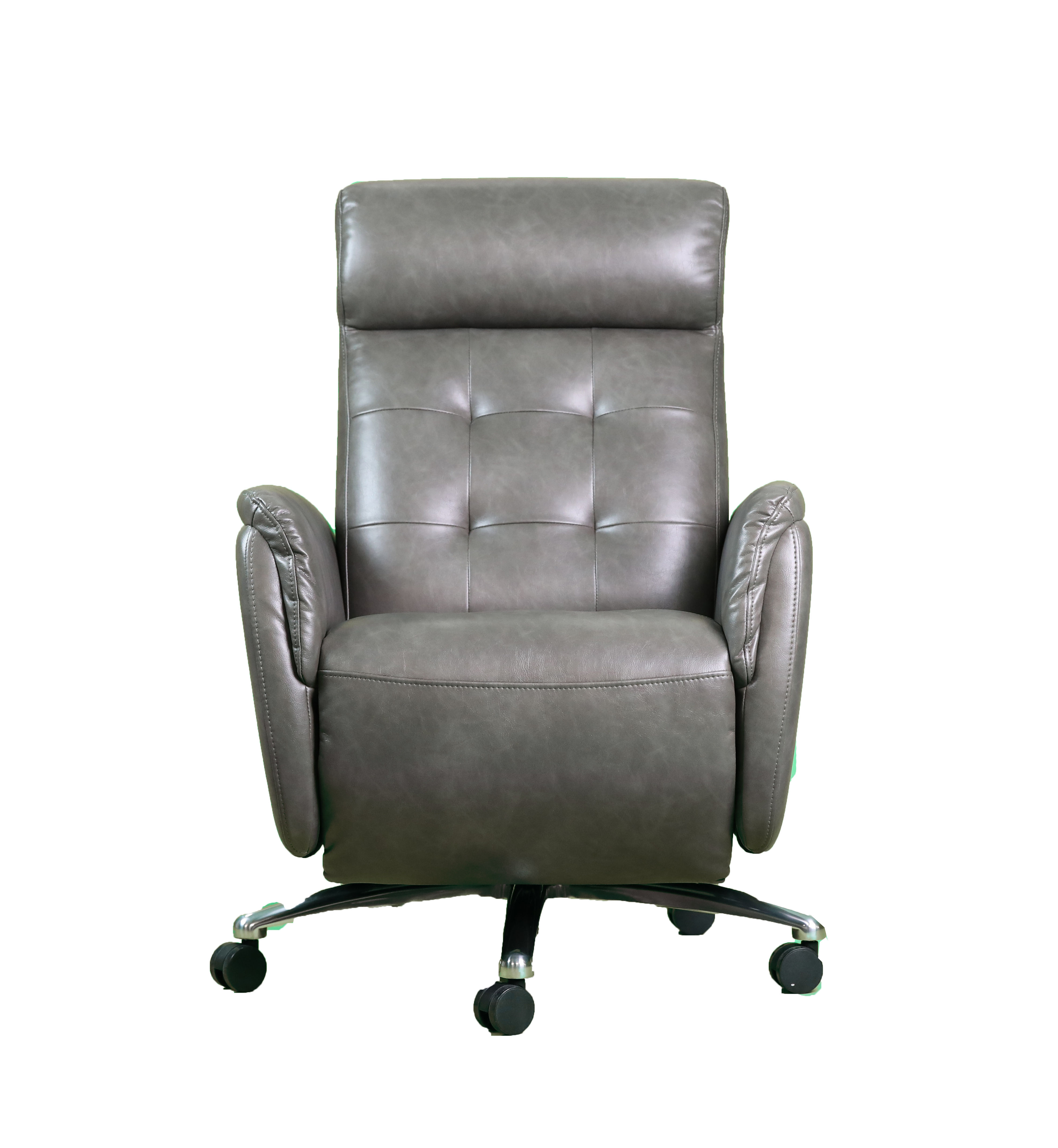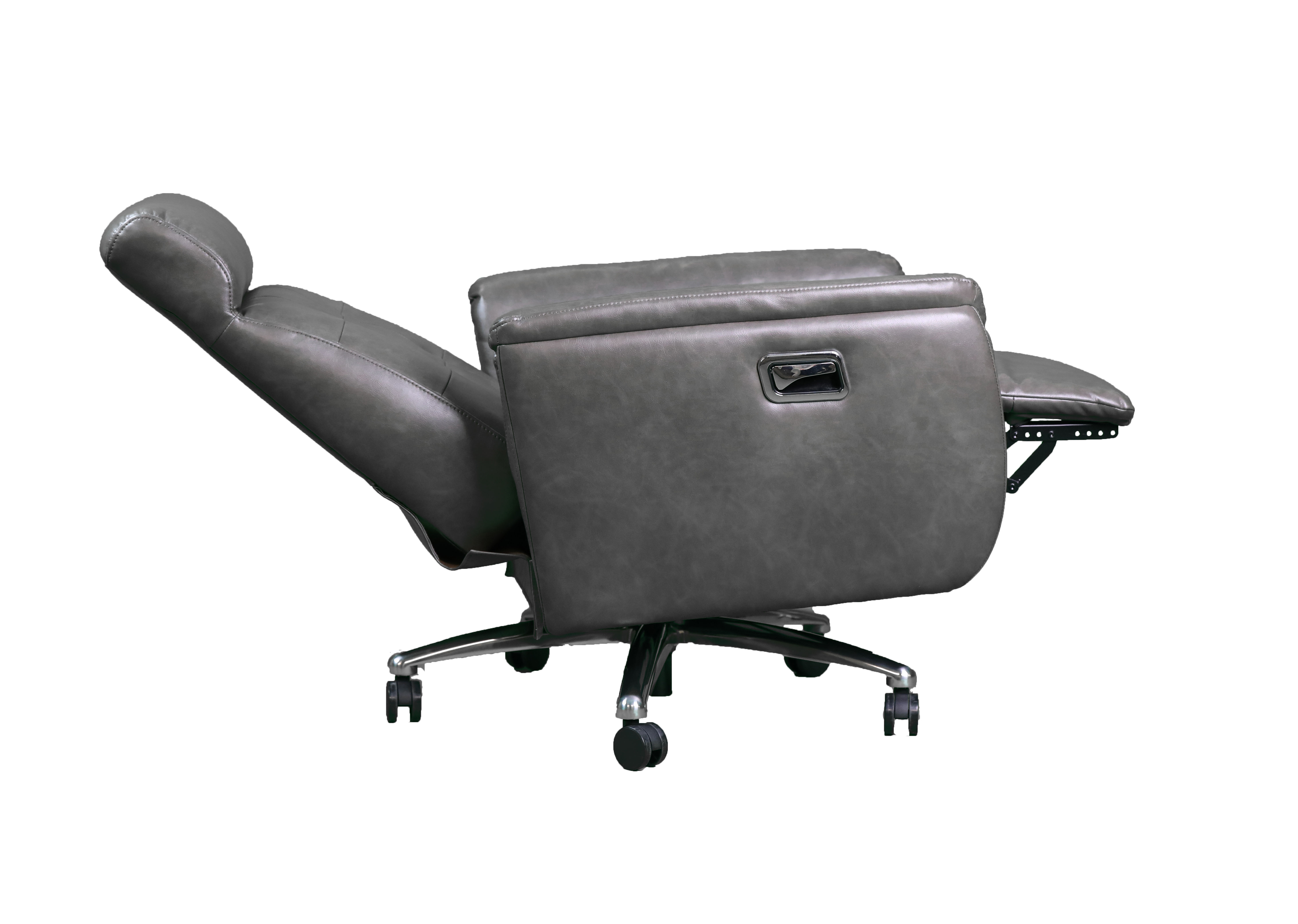 The Banks reclining desk chair, this comfortable chair will be the perfect piece in your office. Made with a gray leather upholstery that has endless style, this reclining desk chair will blend in seamlessly with your existing decor.