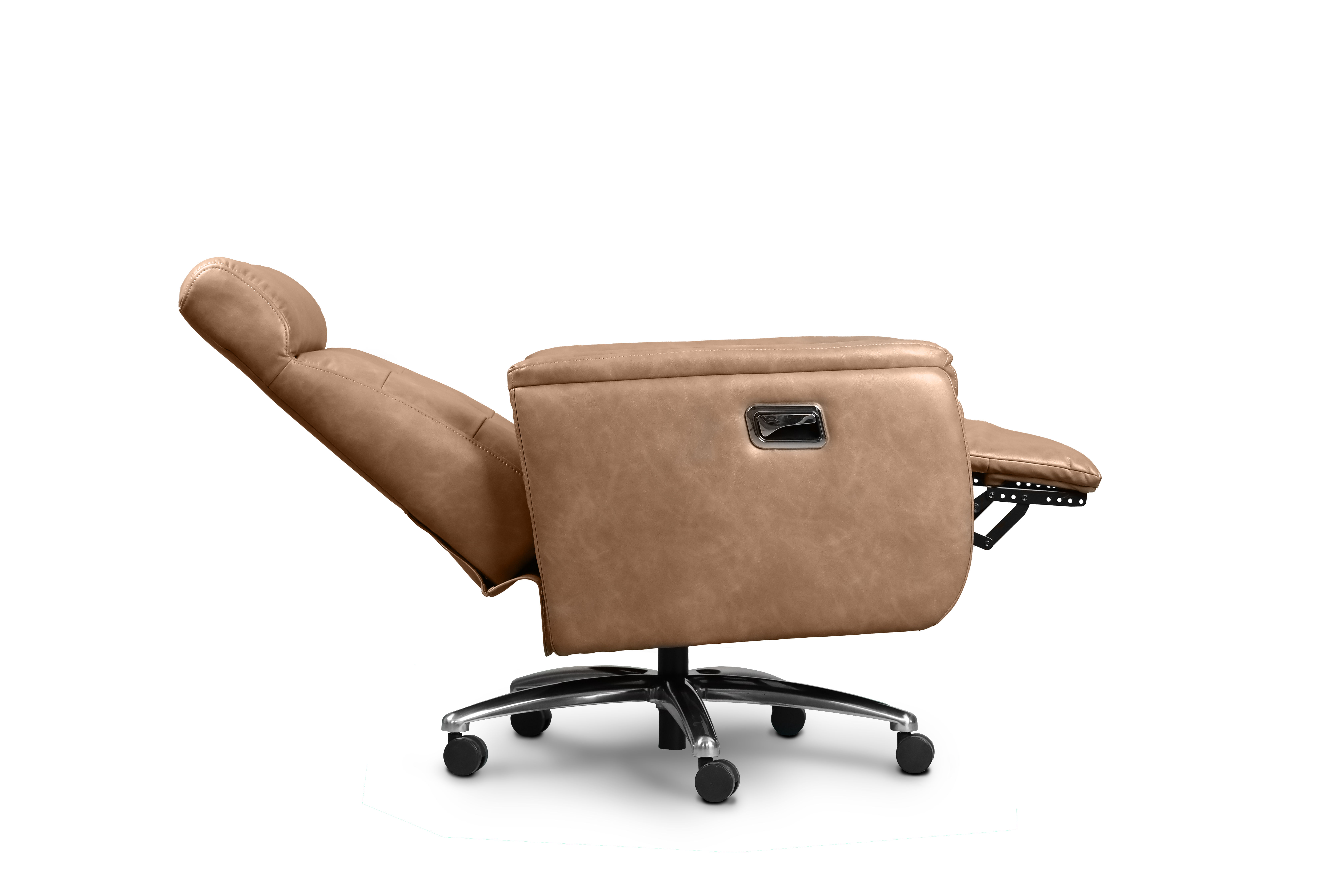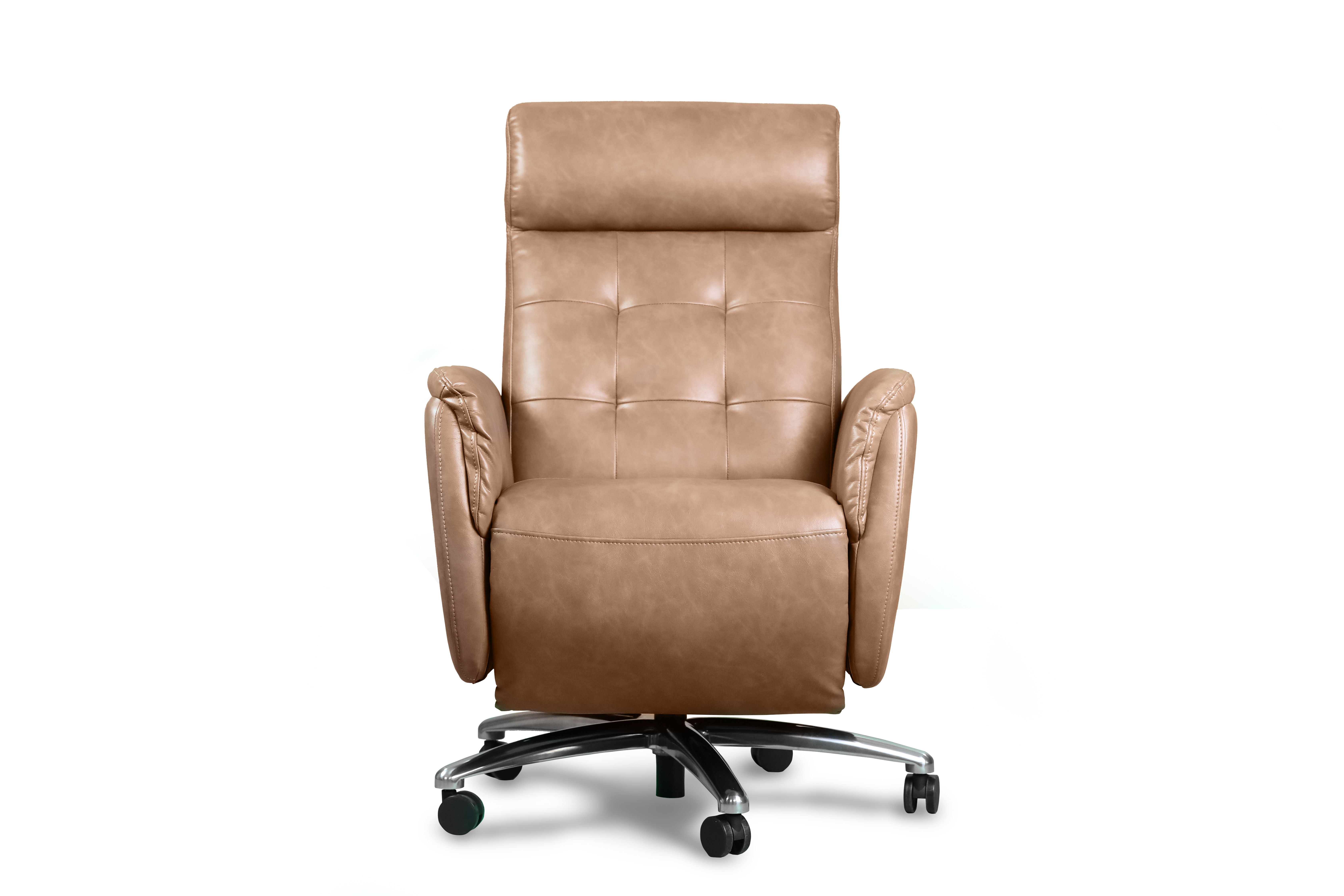 The Banks reclining desk chair, this comfortable chair will be the perfect piece in your office. Made with a tan leather upholstery that has endless style, this reclining desk chair will blend in seamlessly with your existing decor.
