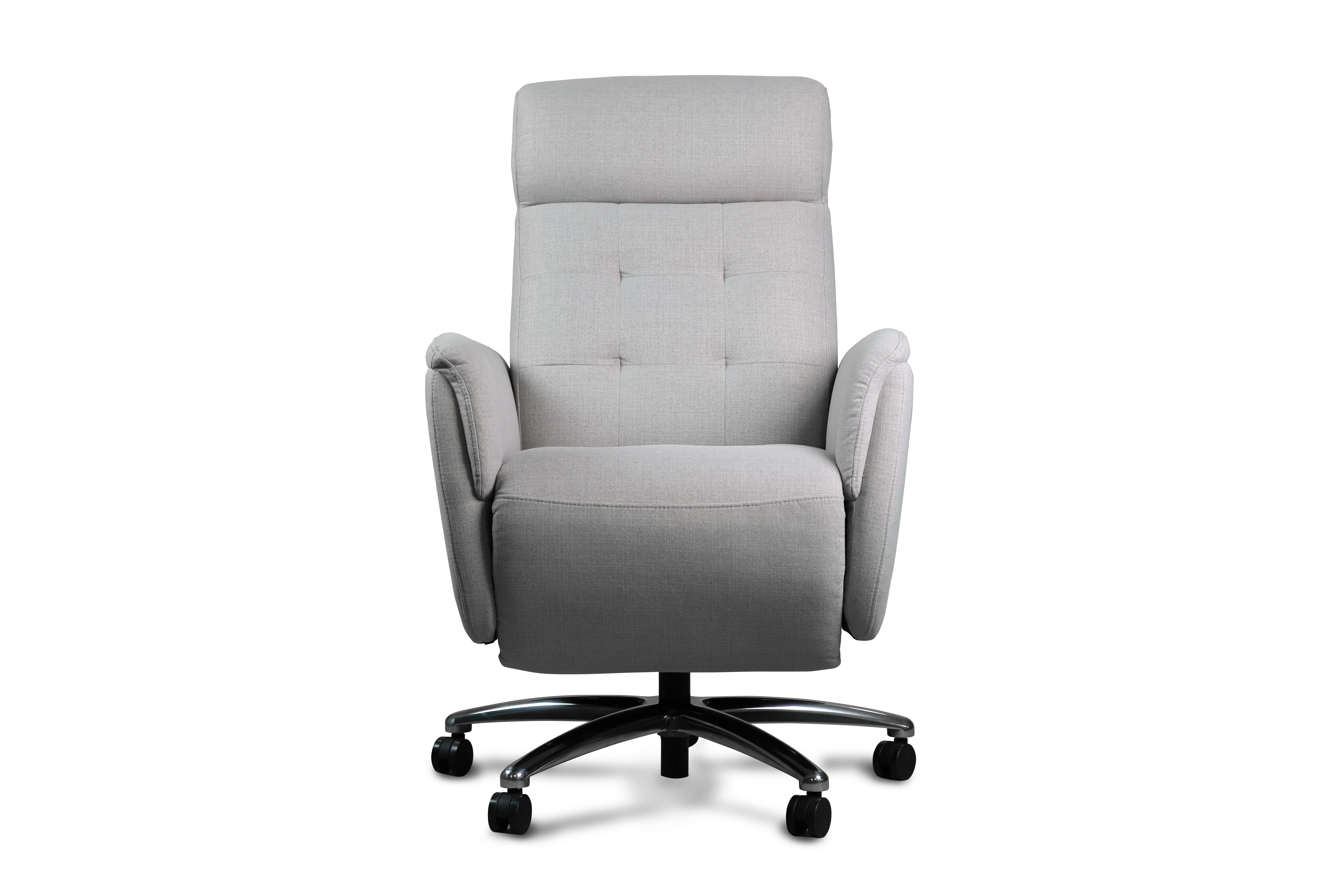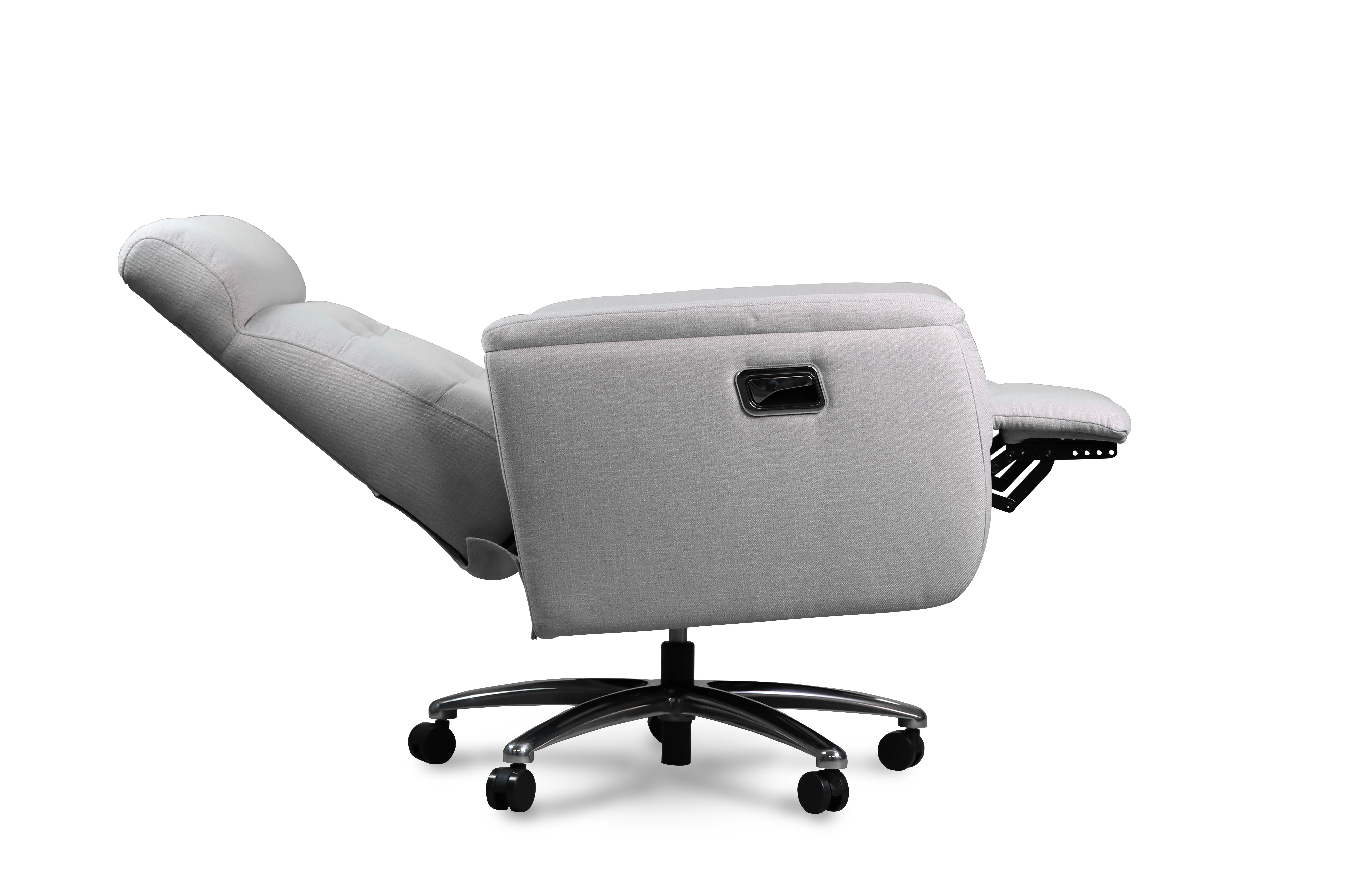 The Banks reclining desk chair, this comfortable chair will be the perfect piece in your office. Made with a gray fabric that is soft to the touch, this reclining desk chair will blend in seamlessly with your existing decor.