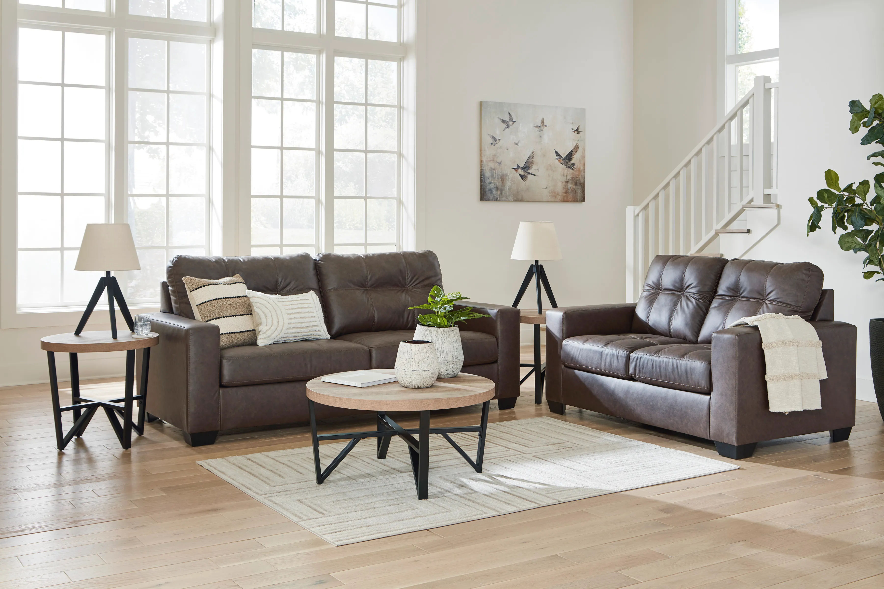 Indulge in the comfort and versatile style of the Barlin Mills sofa sleeper in a brown faux leather upholstery.