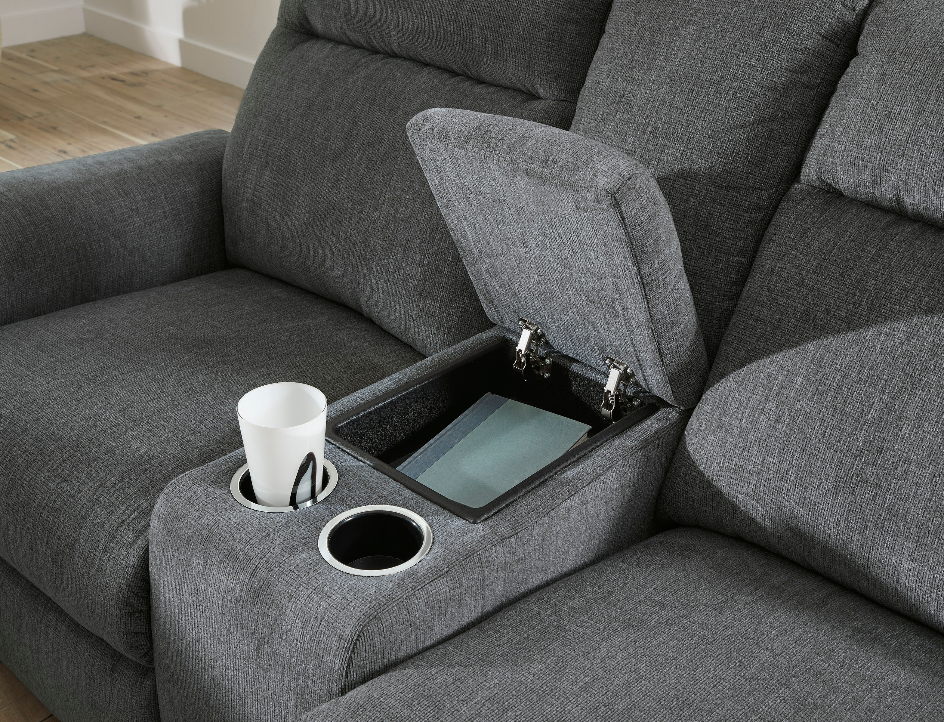 Barnsana Power Reclining Loveseat with Console, Gravel, large