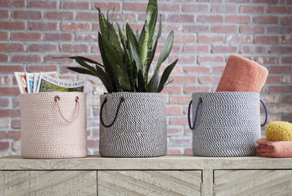 Clutter doesn’t stand a chance with this hand braided basket around. Pick it up by the braided handles and move it to where it’s needed most. It not only provides storage but it’s also stylish. Pink and white design is timeless and teeming with cottony texture.