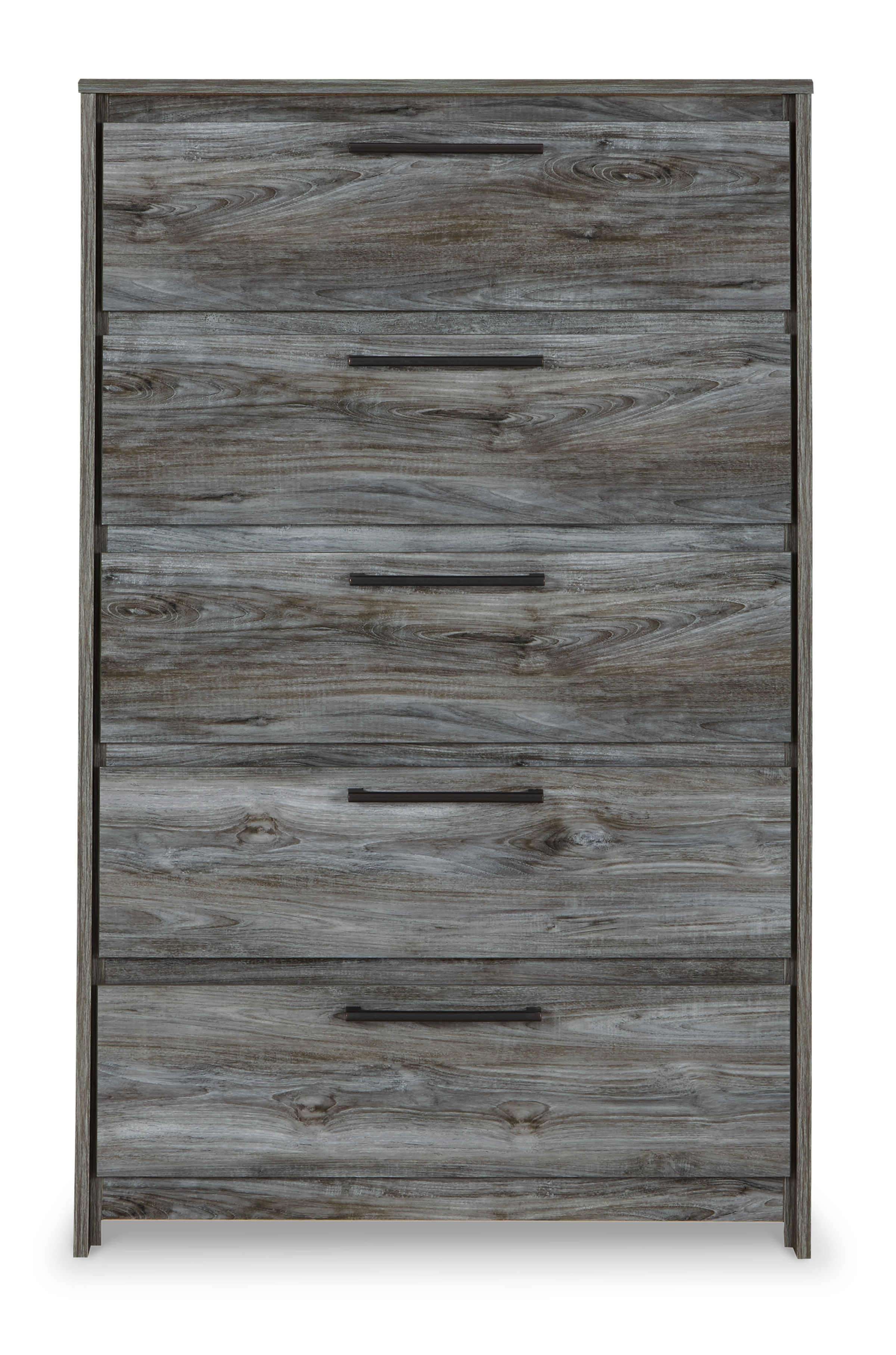 Beachy style and lots of storage go hand in hand with the Baystorm chest. Its driftwood and surfer-inspired smoky finish creates a rustic look that's perfect for setting the scene of an island getaway. Five roomy drawers give you the space needed for stowing away clothes and more. Clean lines and modern handles provide an authentic look to be admired for years to come.