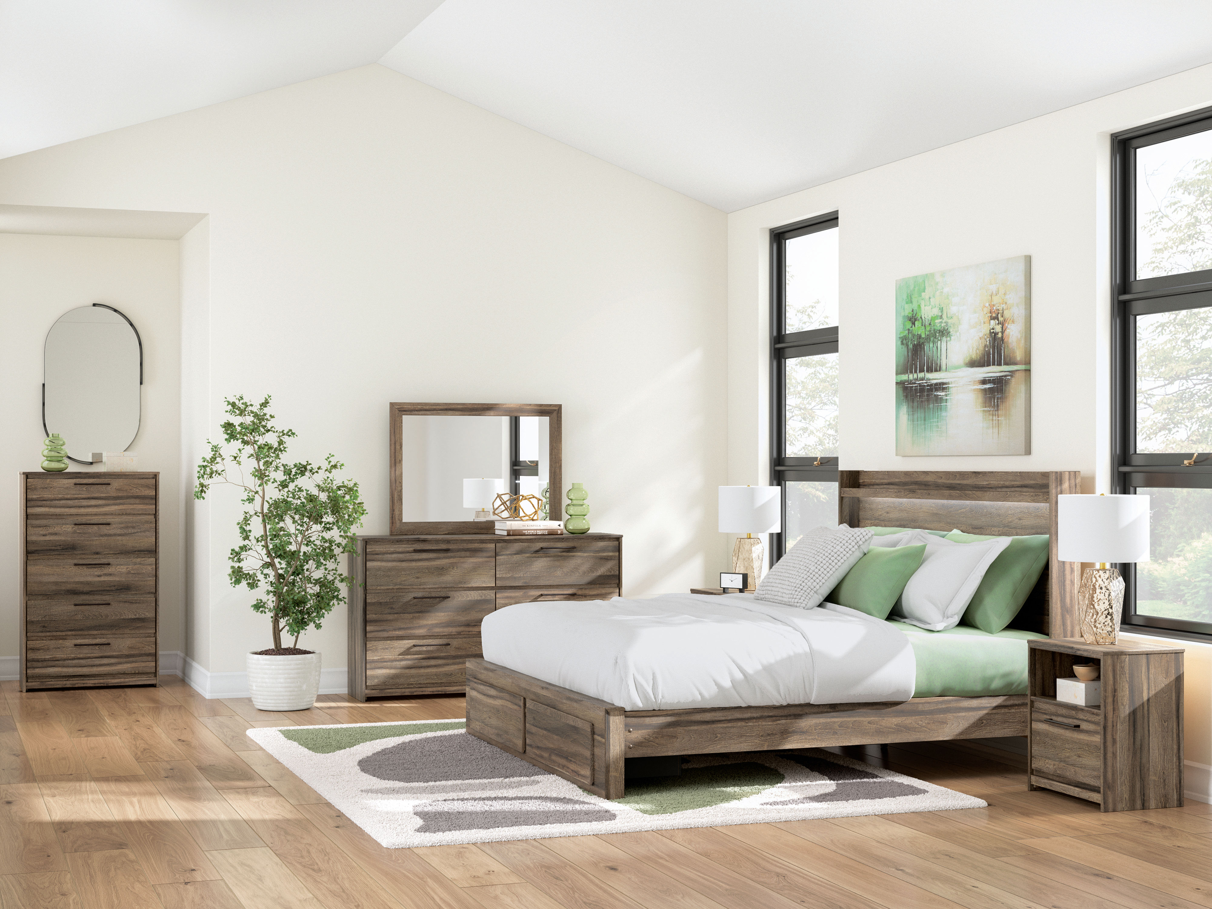 • Includes panel headboard, storage footboard, rails and roll slats