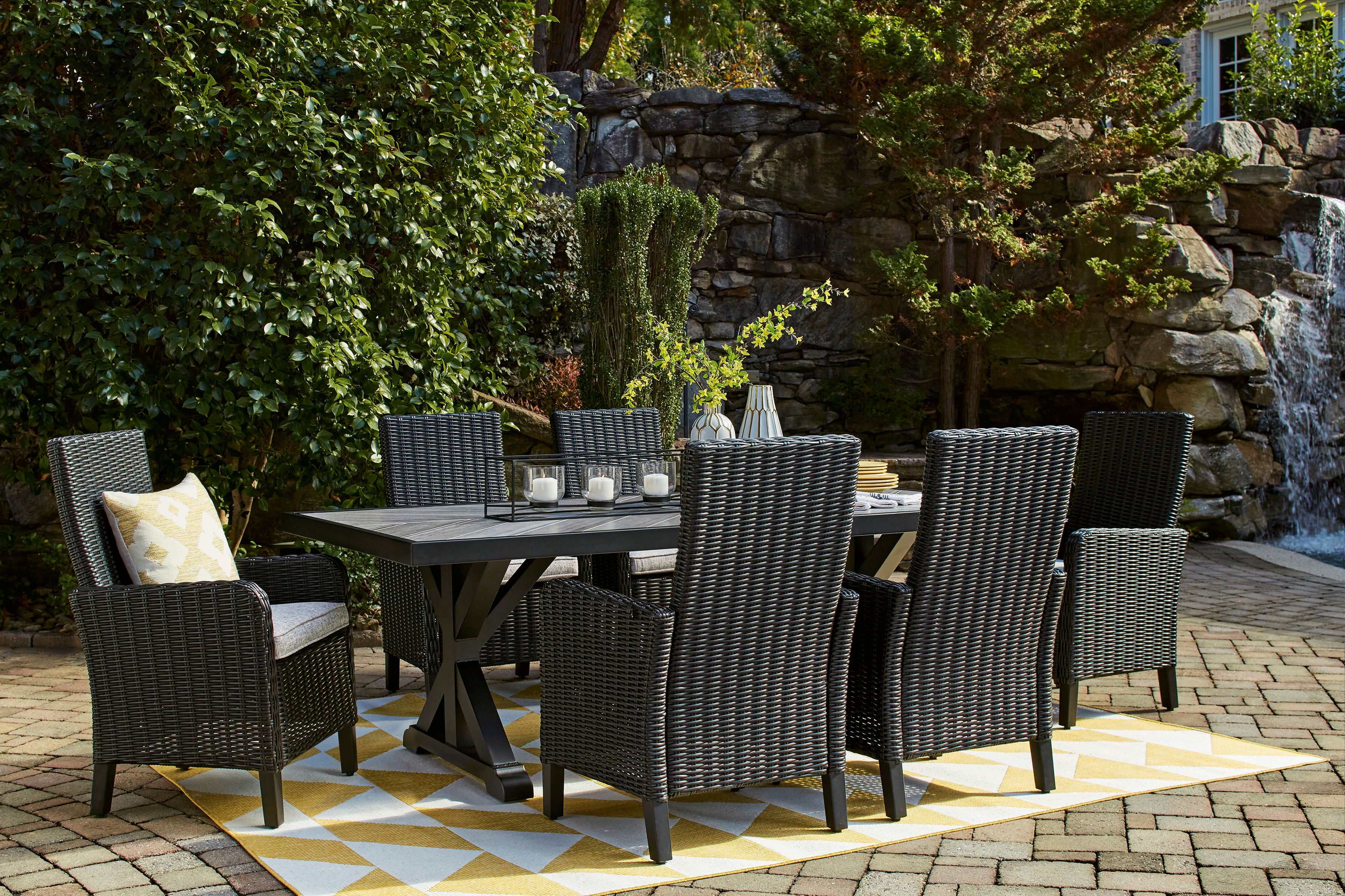 • All-weather resin wicker handwoven over rust-free aluminum frame with durable powder coated finish
