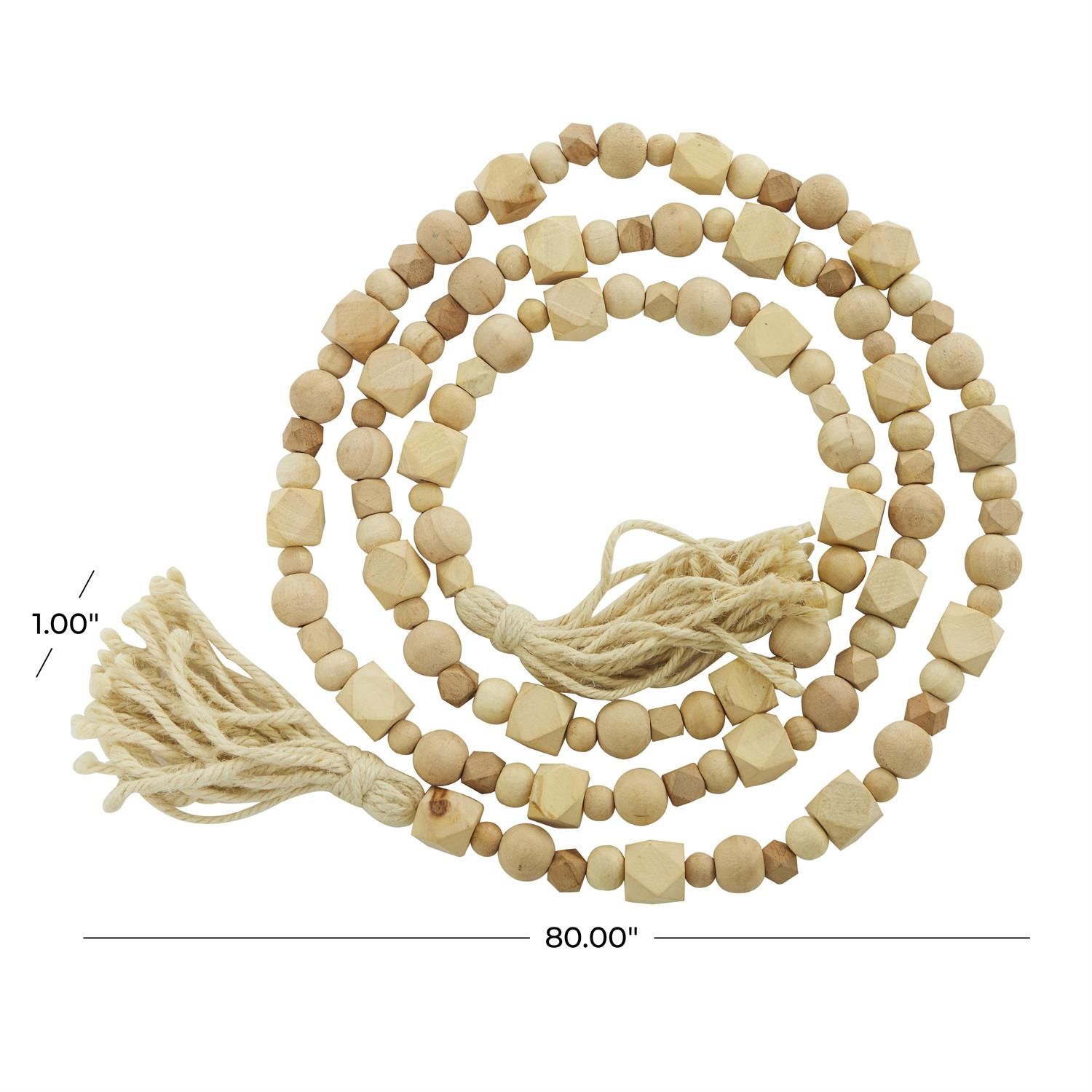 Designed with a free-spirited charm where vibrant hues, eye-catching patterns, and whimsical accents transform your space and showcase your personality. The light brown beaded garland with tassel is crafted with mango wood and cotton for a durable and organic design. This hexagon bead tassel garland features an oiled light brown finish on the beads with cream tassels, perfect for a farmhouse-styled home. The mango wood garland with tassel boasts a versatile length featuring small multi shape beads that effortlessly elevate any decor style.