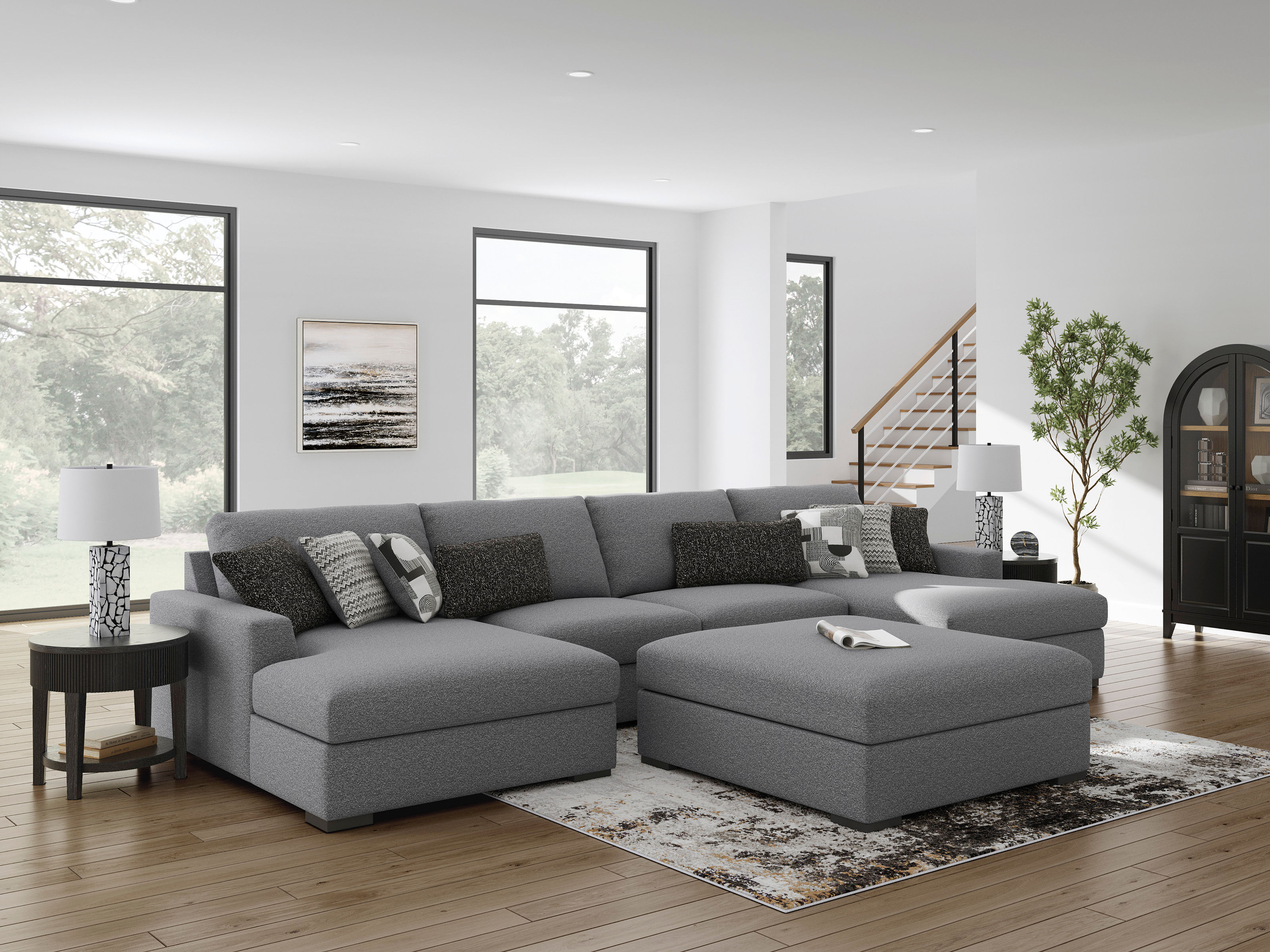 With this oversized accent ottoman, you can craft a living room everyone will love to lounge in. The contemporary design and goes-with-anything neutral hue offer endless style possibilities. And you can forget the headache of spills and stains—when it's time to tidy up, the ottoman's Next-Gen Nuvella™ performance fabric makes cleaning nearly effortless.