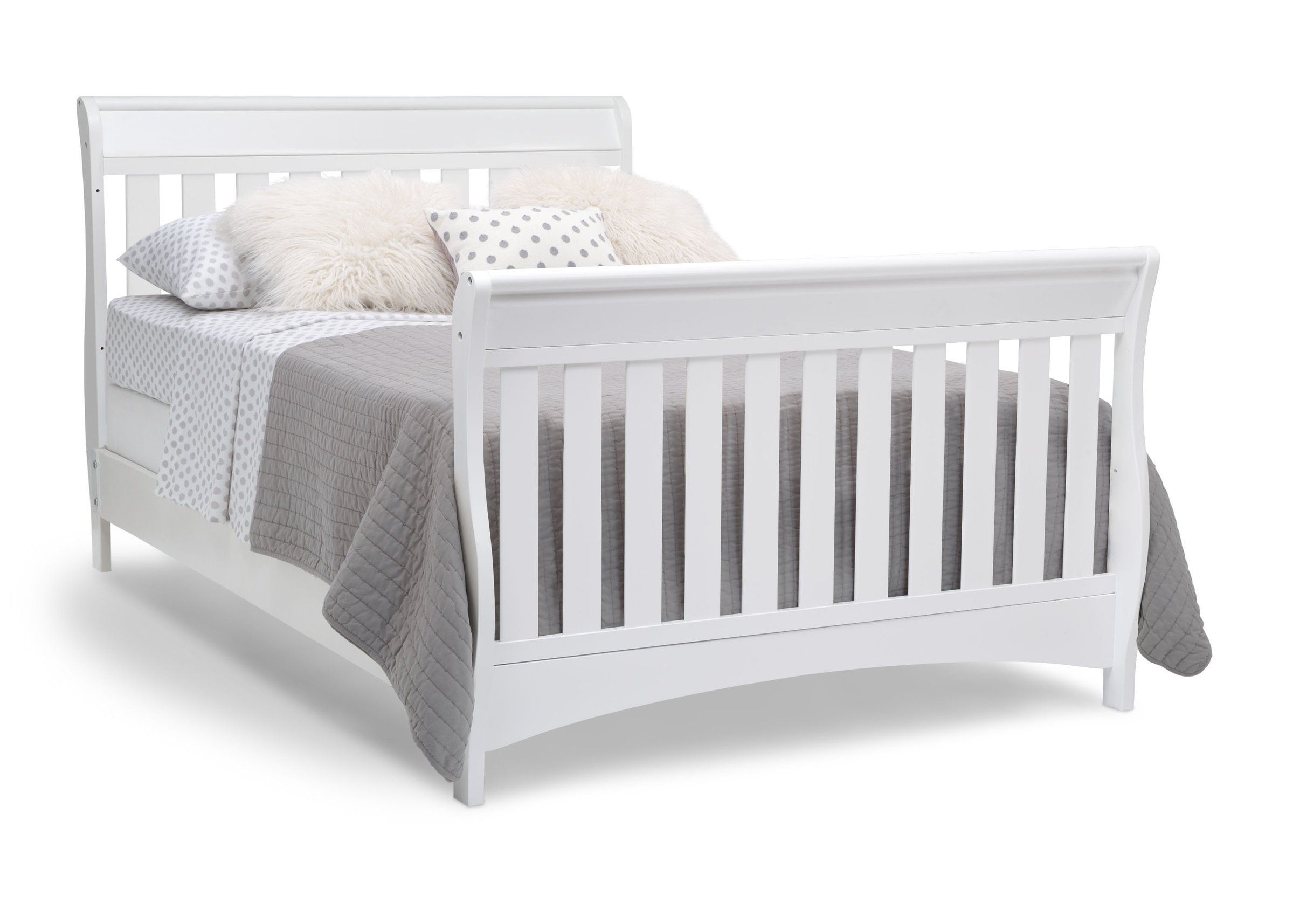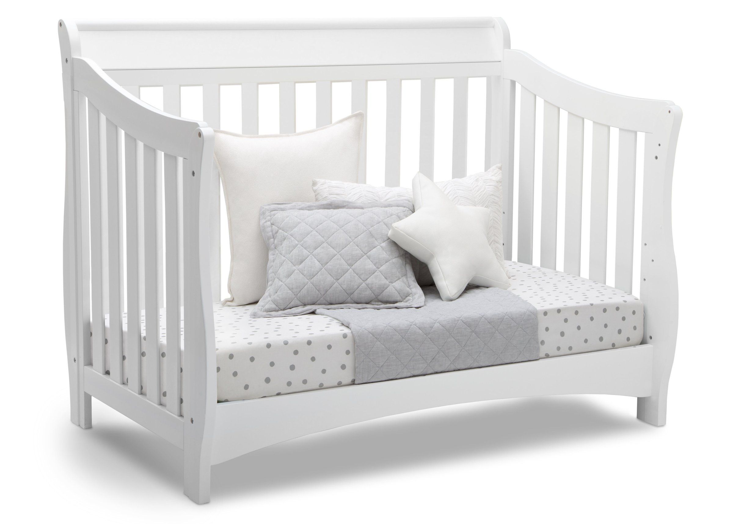 Featuring a beautiful, understated sleigh silhouette, the Bentley 'S' Series 4-in-1 Crib from Delta Children delivers functionality and outstanding value for years to come. Made of strong and sturdy wood, this multi-positional crib is built to handle anything your child throws its way, and easily converts to a cozy toddler bed, daybed and full size bed (Toddler Guardrail & Full Size Bed Rails sold separately).