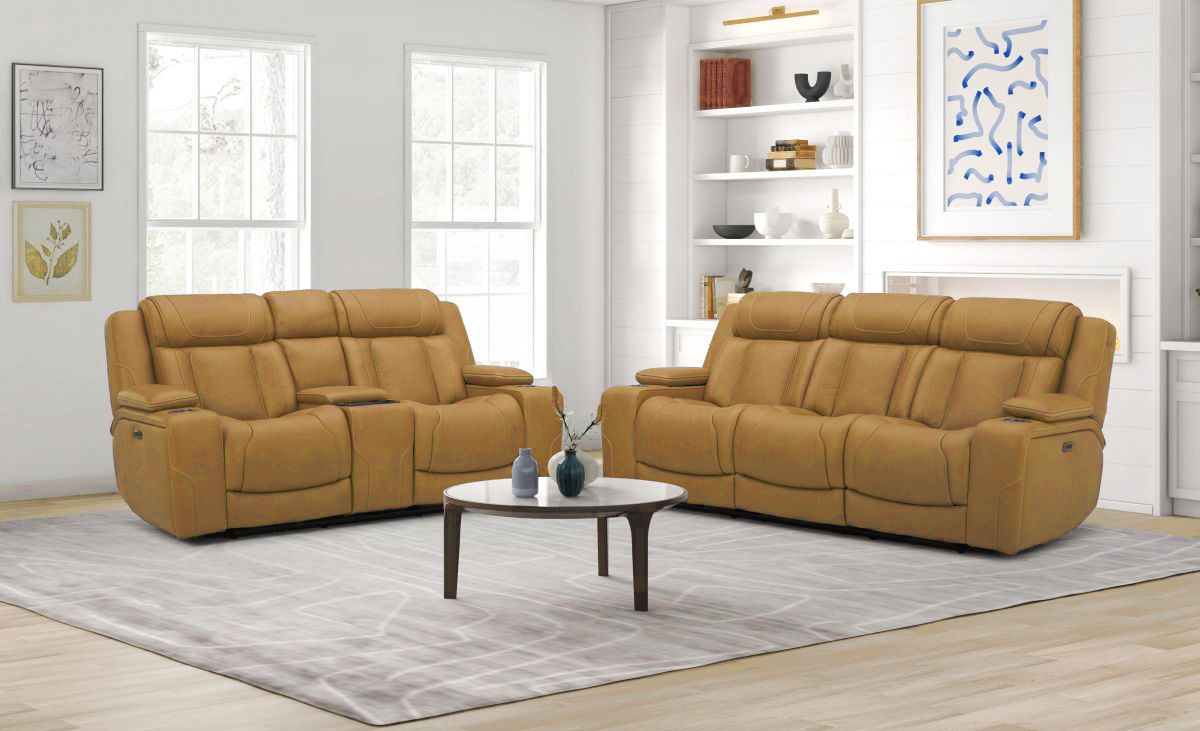 Built for comfort, function and family, the Bentley power reclining loveseat is meant to be lived in. This style features tan leather upholstery and plush arm cushions. This reclining loveseat has various function options, including power recline, cupholders on each arm rest and hidden storage.