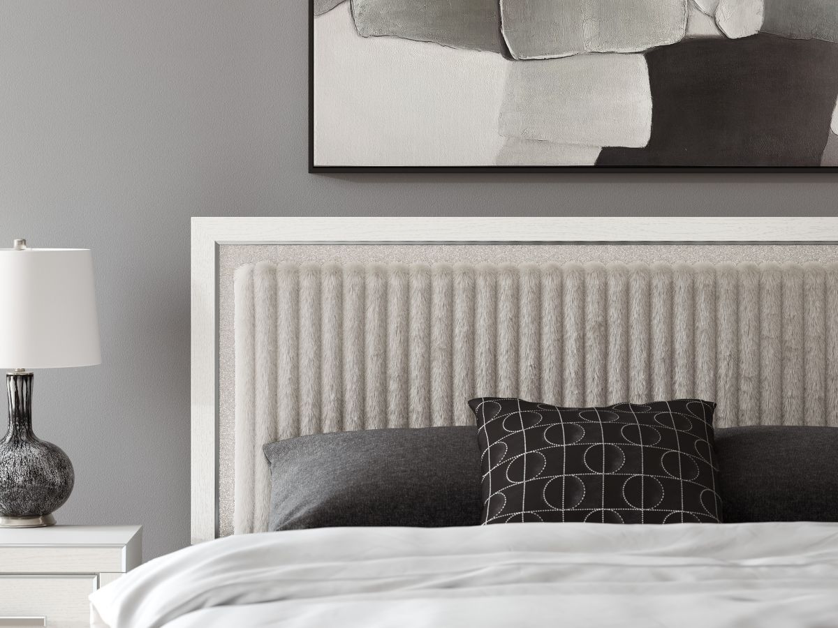 If glitz and glam are your jam, you’re gonna love this king upholstered panel storage bed. Gleaming glitter and dazzling chrome-tone touches are paired with tufted gray faux fur for a stunning pop of pizzazz. And the spacious storage drawers, with large-scale handles and faceted details, don’t disappoint. Loaded with chic flair and serious sparkle, it's a simply splendid way to wake up your inner sanctum’s style.