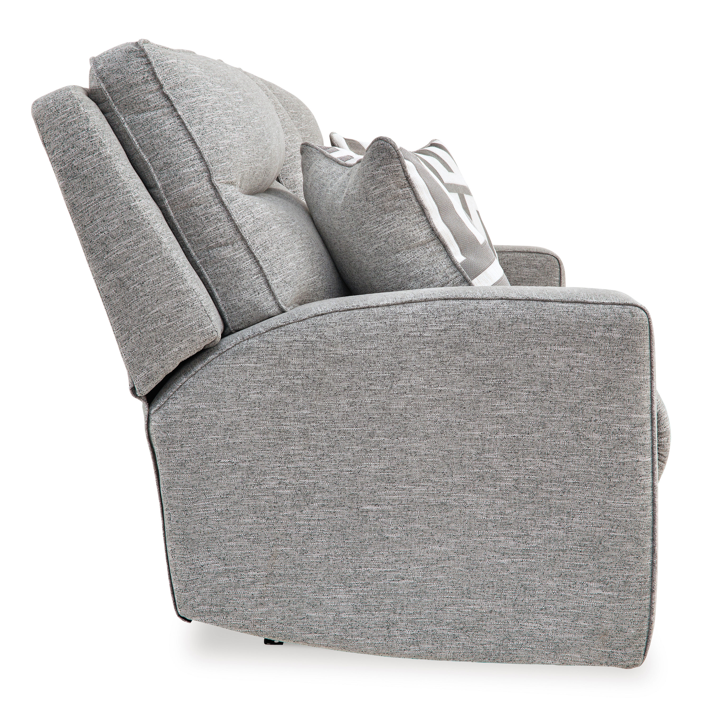 If style is the question, then the Biscoe power reclining loveseat is the answer. Its clean-lined profile is beautifully contemporary. High-performance fabric and plump cushioning make it so easy to comfortably kick up your heels. The adjustable Easy View™ headrest allows a primo view of the TV, and the extended ottoman provides extra room to really stretch out. Simply sit back, chill out and recline away—this loveseat is designed to be your favorite seat in the house.