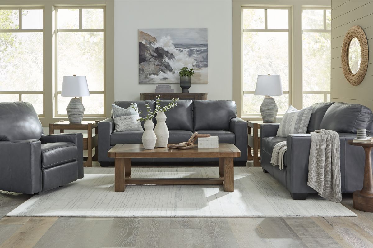 • 100% top grain leather covers inside areas such as the back, seat and arm cushions; skillfully matched faux leather covers the remaining areas