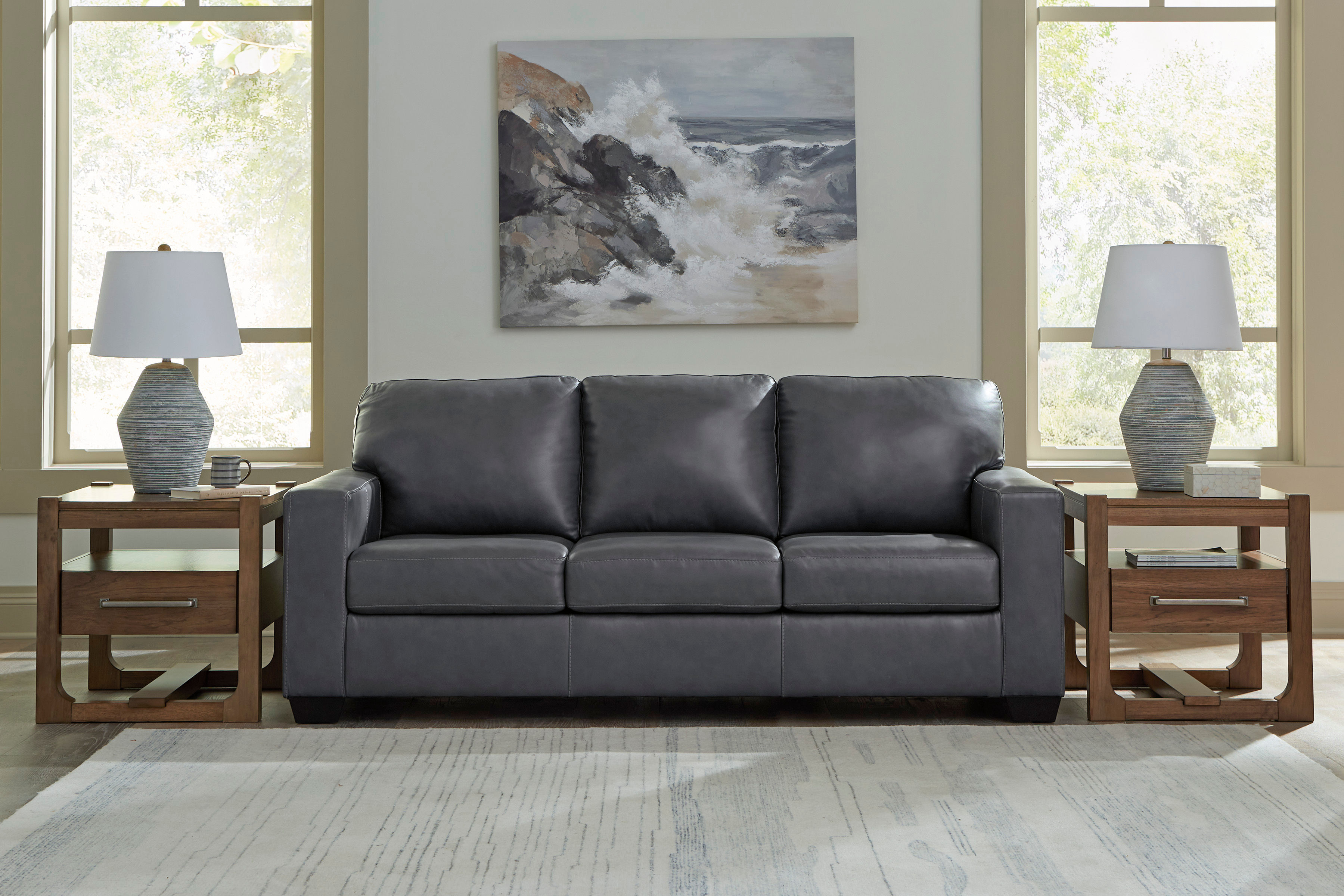 Few sofa sleepers demand attention like this one. It's wrapped in a combination of high-quality leather and expertly matched faux leather upholstery that's sure to please. A two-tone effect enhances the depth of color for a uniquely rich appeal. Every inch of this striking piece is tailored to perfection, with clean, refined lines that take contemporary design to a new level. The pullout queen memory foam mattress is an added comfort for overnight guests.