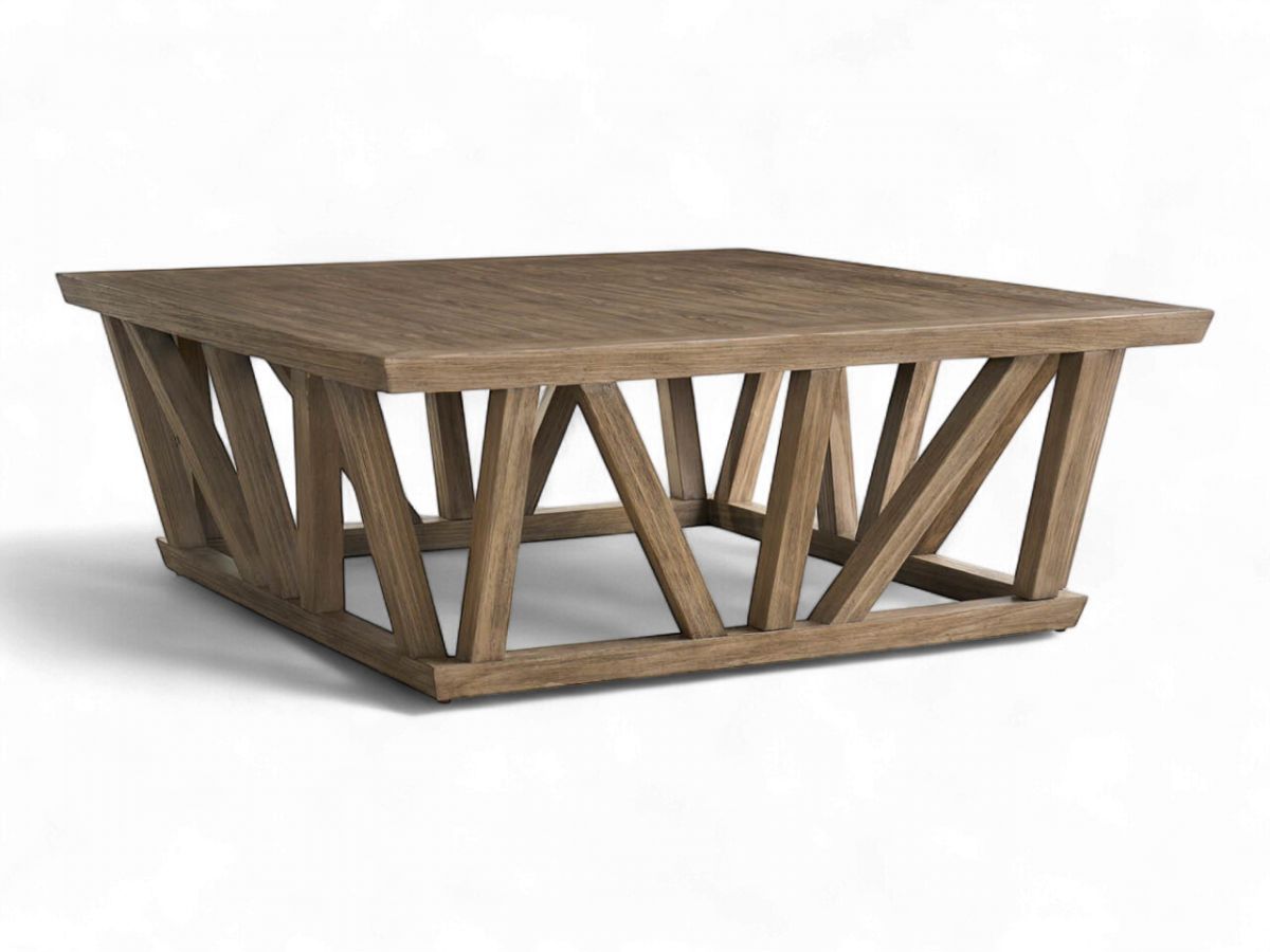 The Boulder Square Cocktail Table makes a bold statement with its architectural, open-frame design. Finished in a warm Boulder medium-brown, its clean lines and geometric structure bring a modern, sculptural element to your living space. This table serves as a striking centerpiece, blending form and function with a touch of contemporary elegance.