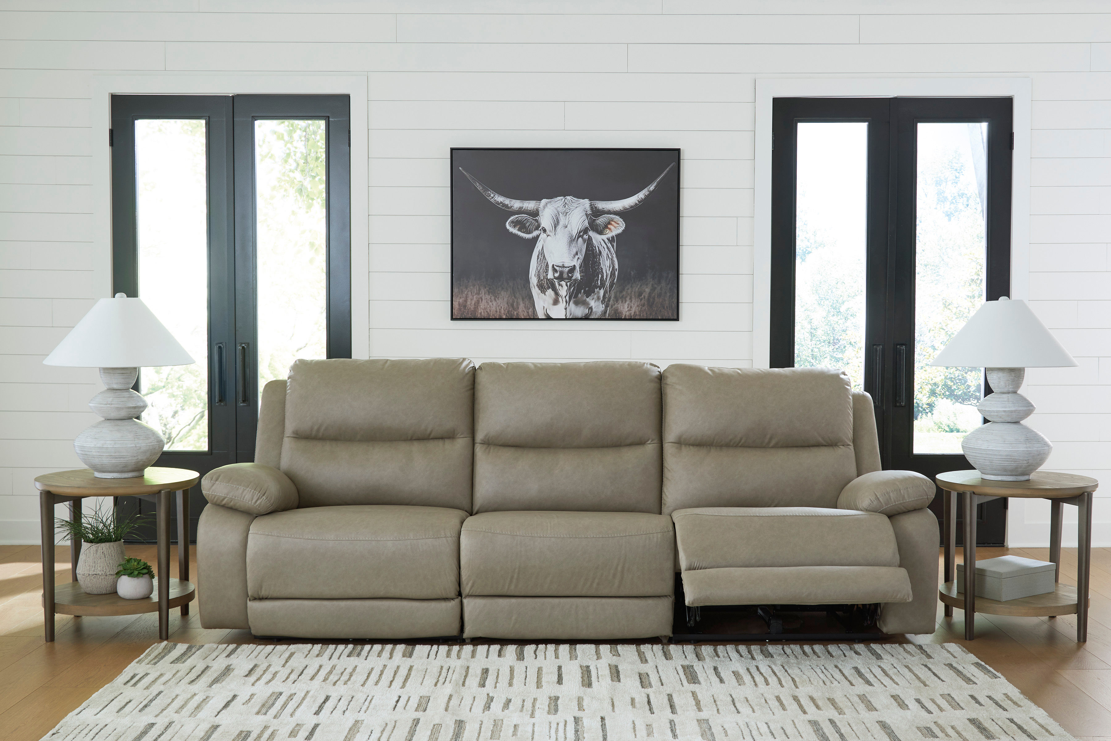 The richly neutral upholstery of the Brannigan power reclining sofa brings contemporary style to your living room.