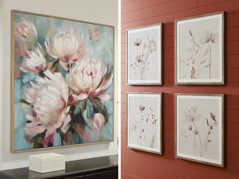 Have you felt like you have been missing a sense of joy in your home? With the arrival of spring comes spring cleaning and a need to refresh your style. One way to add a new and fresh look to your home is with flowers (faux or fresh) and floral design. Floral designs help enhance the feeling of happiness in your home while adding visual interest and bringing a timeless aesthetic. Whether you bring a botanical touch with a new accent chair for the living room, accent pillows or with floral wall art, finding an on-trend design to add a lively look to your interior is easy with these ideas.
