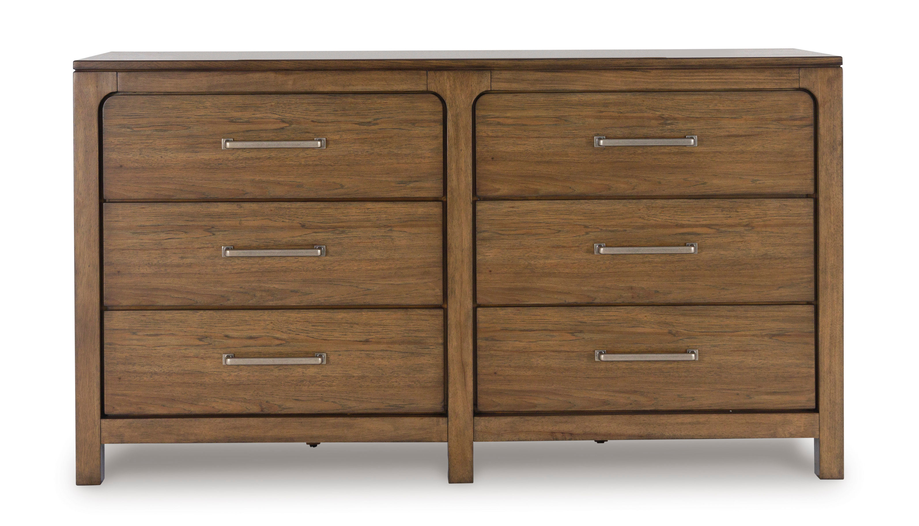 The Cabalynn dresser sits comfortably at the intersection of modern lodge and farmhouse aesthetics. Your warm and welcoming disposition is reflected in the charming architectural elements and light brown glazed finish. Even with its poise, the dresser remains practical. Smooth-gliding drawers tuck away necessities, defining your bedroom with reliable function and style.
