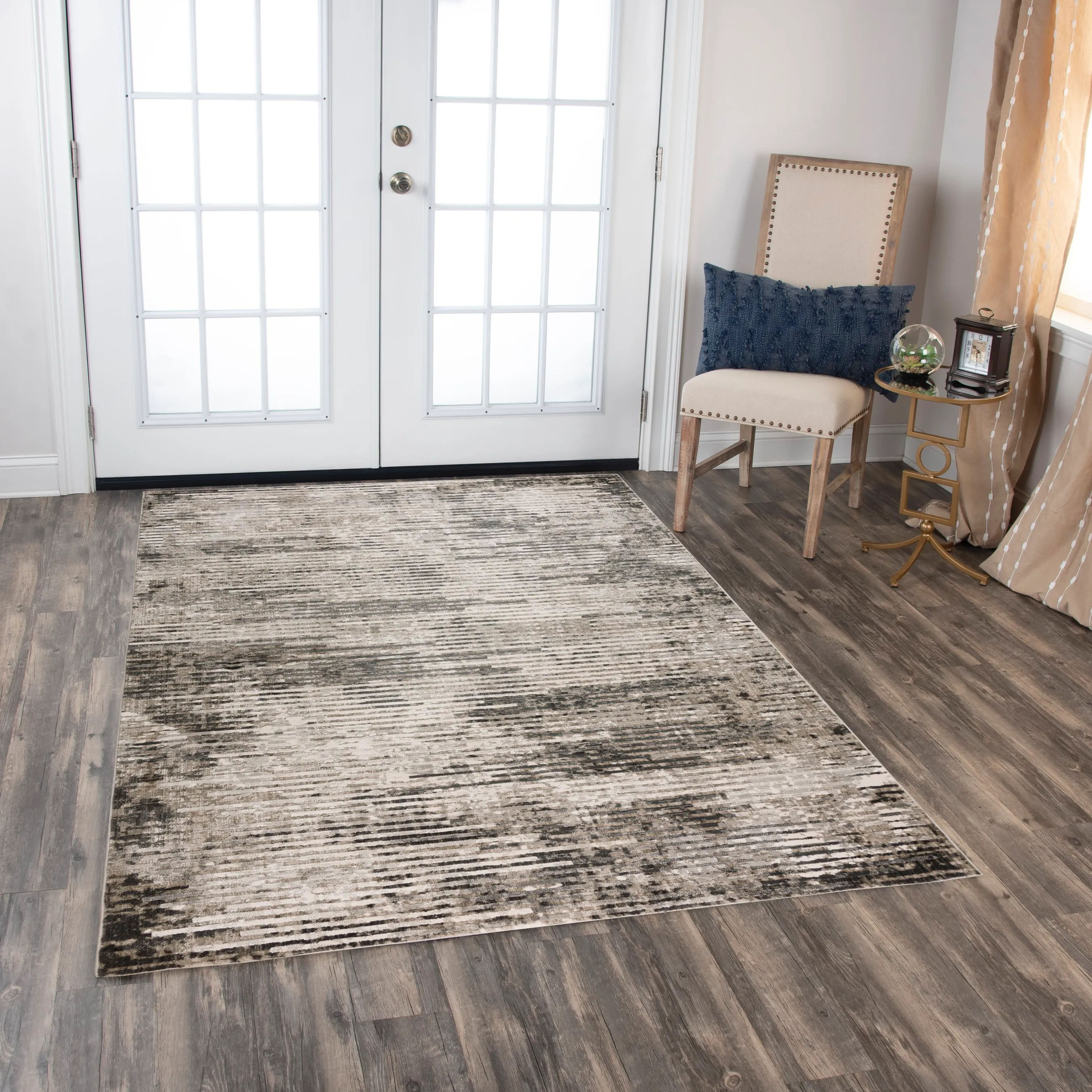 The contemporary design and modern style of the Calabria collection, made with a two-tone color palette of ivory and black. The Calabria collection has a low pile height, an extra soft material that look like silk and easy to clean makes it low-maintenance.