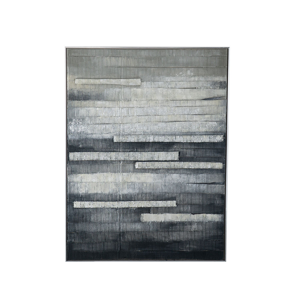 The Camacho framed wall art has strong lines and graphic energy that is the perfect to accent any room. This hand painted oil on canvas is able to be hung vertically or horizontally, and adds texture and dimension with tones of blue-gray, beige, and cream. Create a focal point in your office, living room, or entry and give your home a touch of modern style.