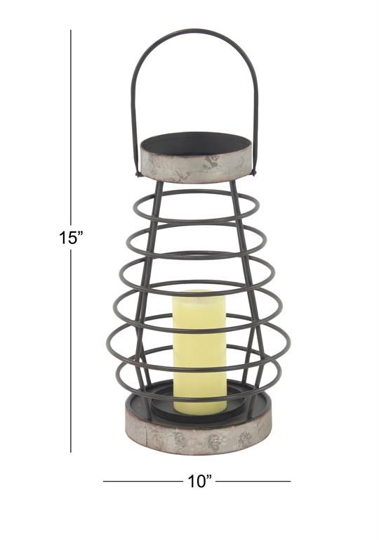 Designed with a farmhouse style for that homey feeling. This lantern candle holder is made of a solid iron construction for durability. Comes in a distressed gray finishing. Features a pear-shaped candle lantern with horizontal metal rings held by four vertical wires.