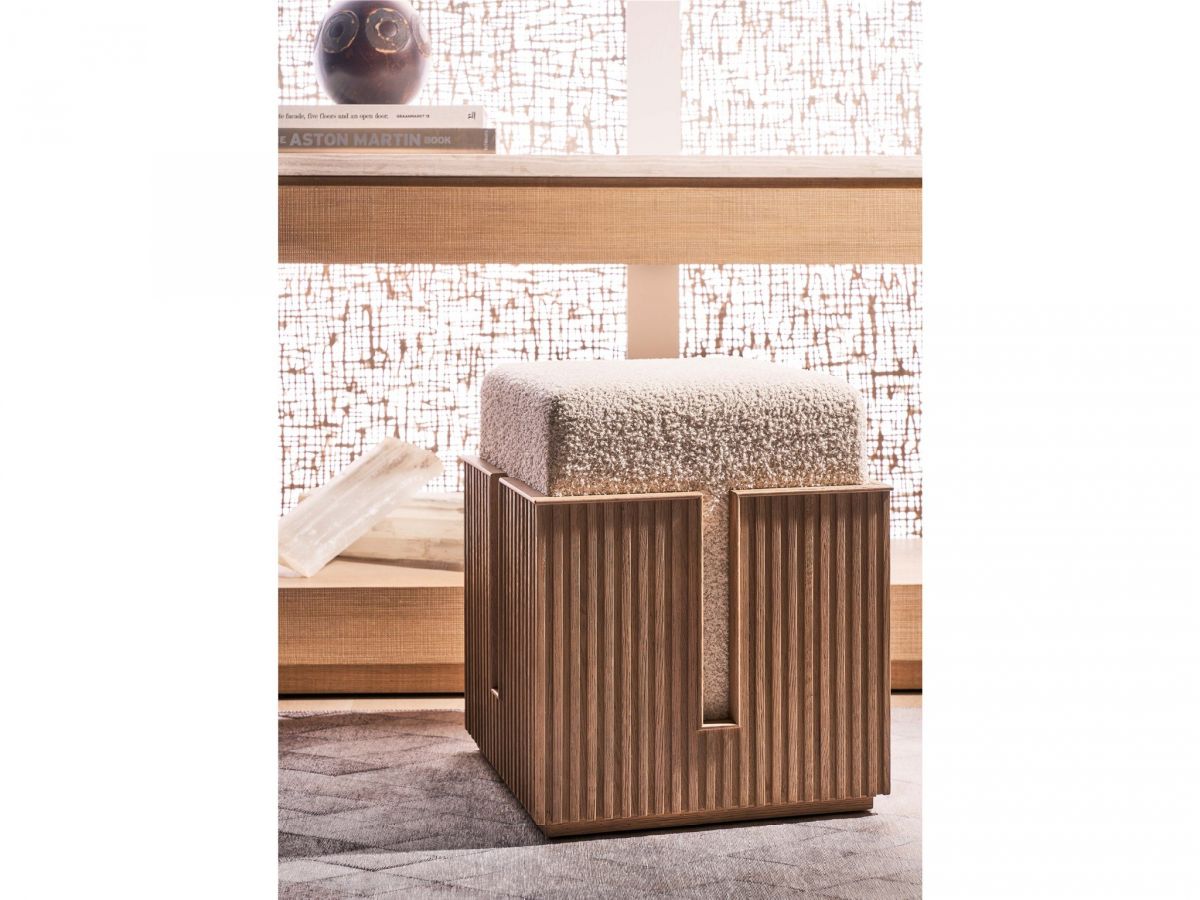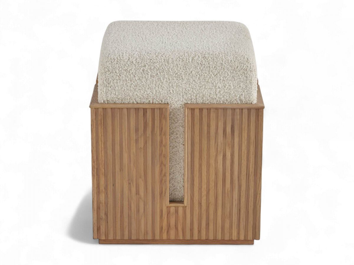 A modern and versatile piece, the Carmen bunching stool features a cozy top and tambour-wrapped base.