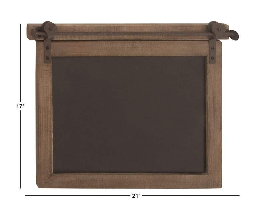 Infuse your home with cozy charm, where weathered textures, rustic finishes, and warm earthy tones create a wholesome atmosphere. Crafted from fir wood and red pine, this brown home wall decor is accented by black chalkboard and iron hardware. Square decor for wall exudes industrial rustic charm, showcasing rusted iron hardware, a warm brown oiled wood finish, and a blackboard center. As a functional feature, this wood wall decor incorporates a chalkboard center, perfect for jotting down notes or messages.