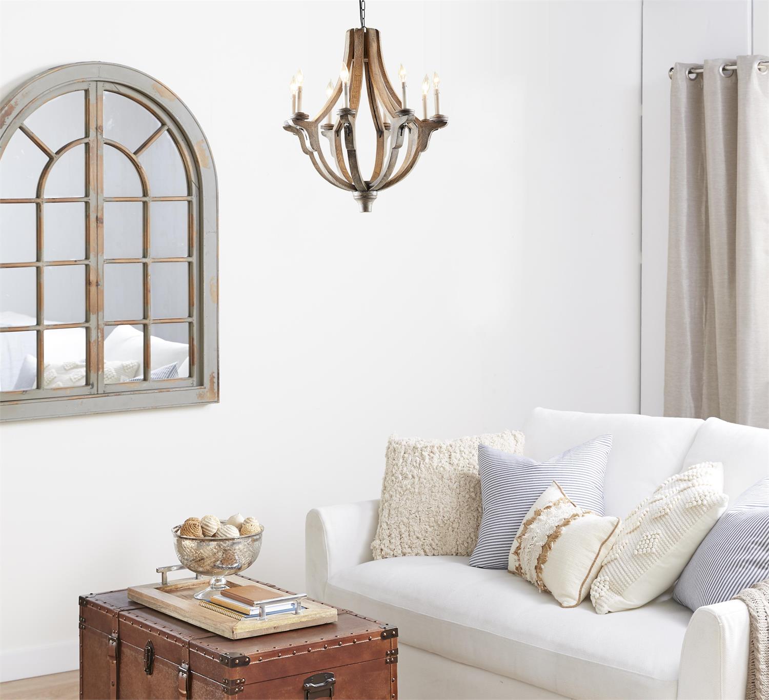 Discover earthy charm with this Chandelier, made with a natural golden brown wood finish.