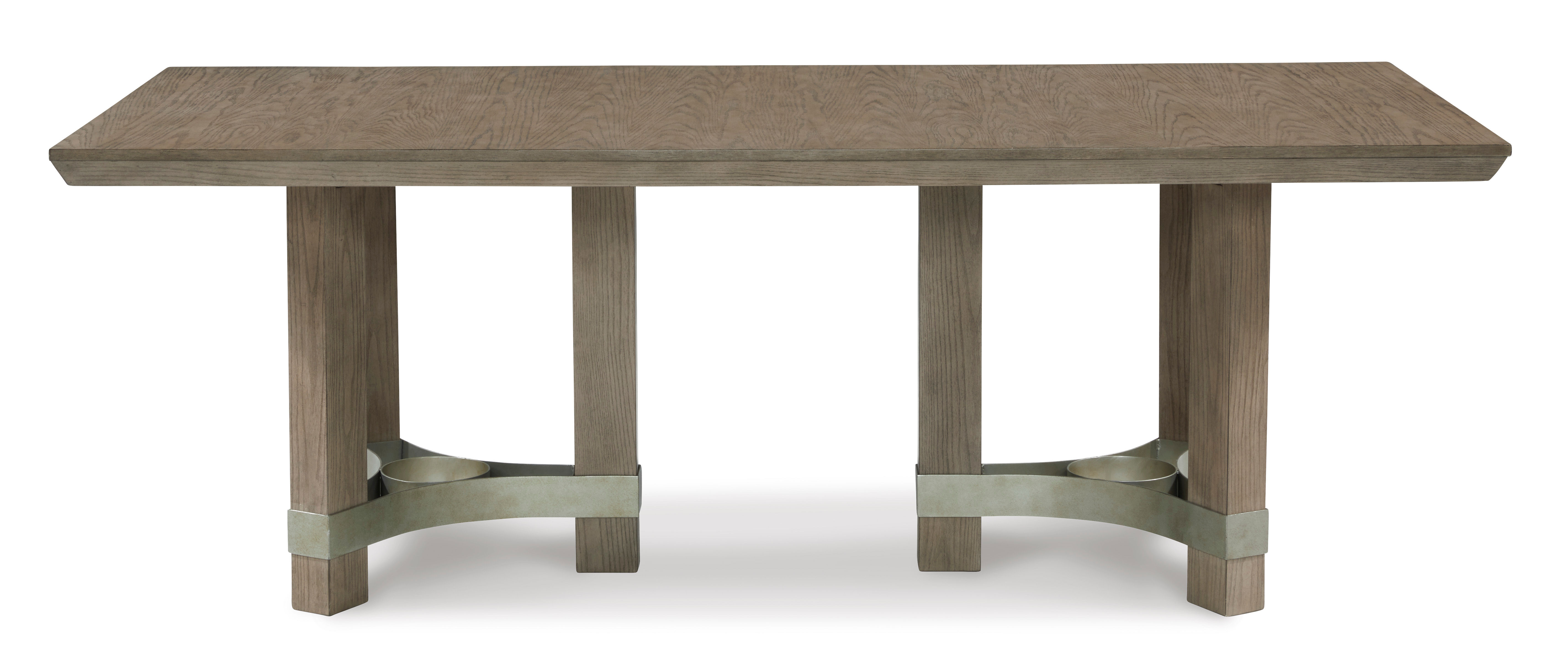 You want your dining room to reflect your refined sensibilities while remaining forward-thinking in design. The simple silhouette of the Chrestner dining table opens the door to a dining room with the curated look and subtle flair you desire. The piece's elegant waxy gray finish gets an added touch of luxury with a double-pedestal base and beveled-edge top, showing remarkable attention to detail. Whether you're hosting family meals or holiday entertaining, this table is a place to gather around in streamlined style.