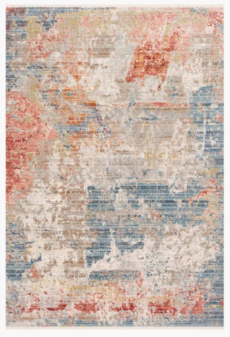 Display a colorful rug with the Claire collection, made with a mix of abstract and traditional designs.