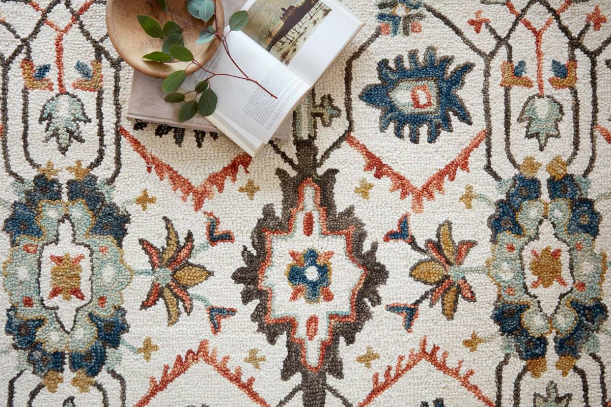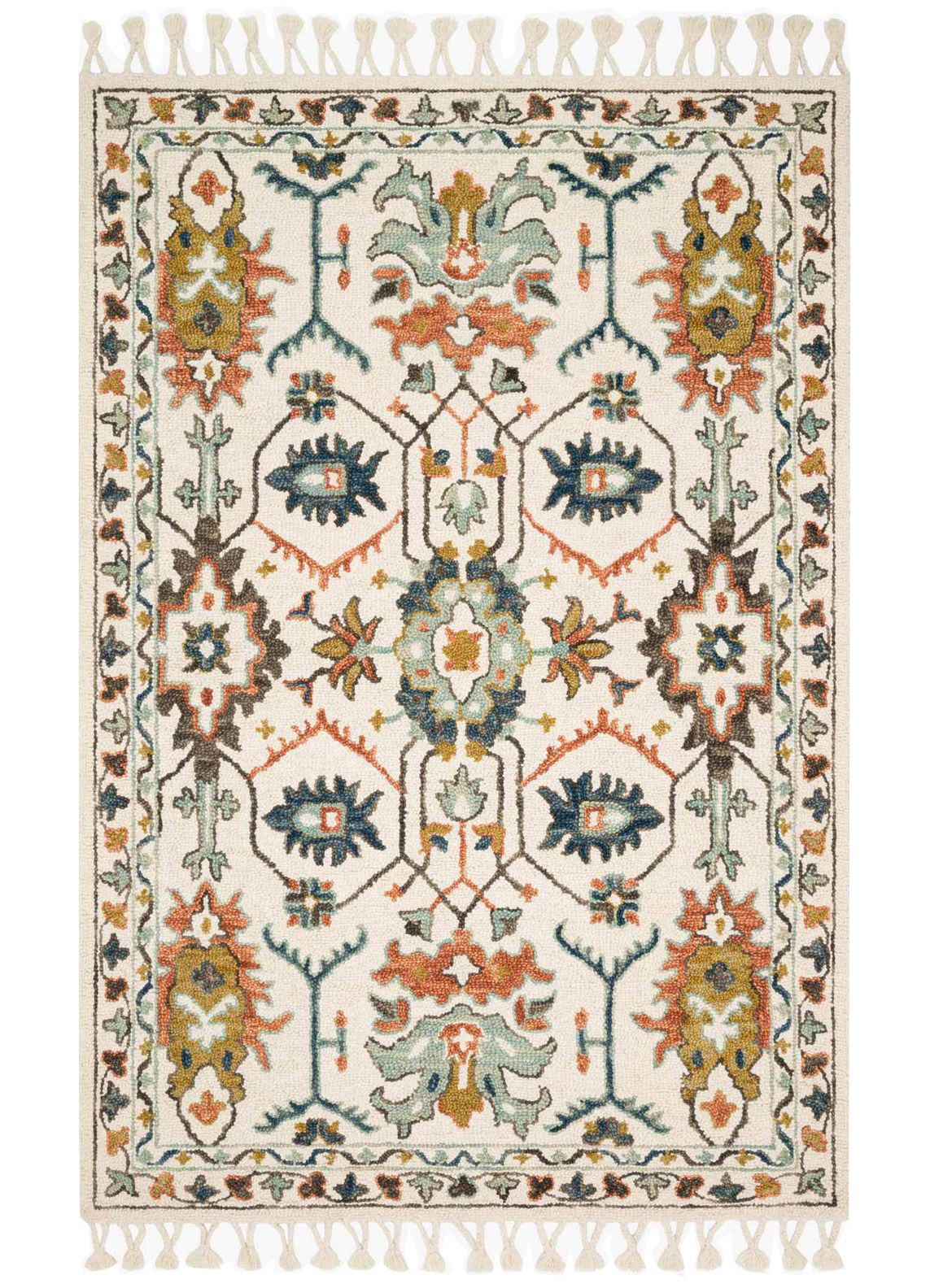 Our fresh take on traditional East Indian fabrics. Colorful and patterned, the Kasuri Collection for Magnolia Home by Joanna Gaines is made of 100% wool, hooked by skilled artisans in India. Even better, each piece is embellished with 4" tonal braided tassels for a relaxed, but detailed finish. Crafted by Loloi.