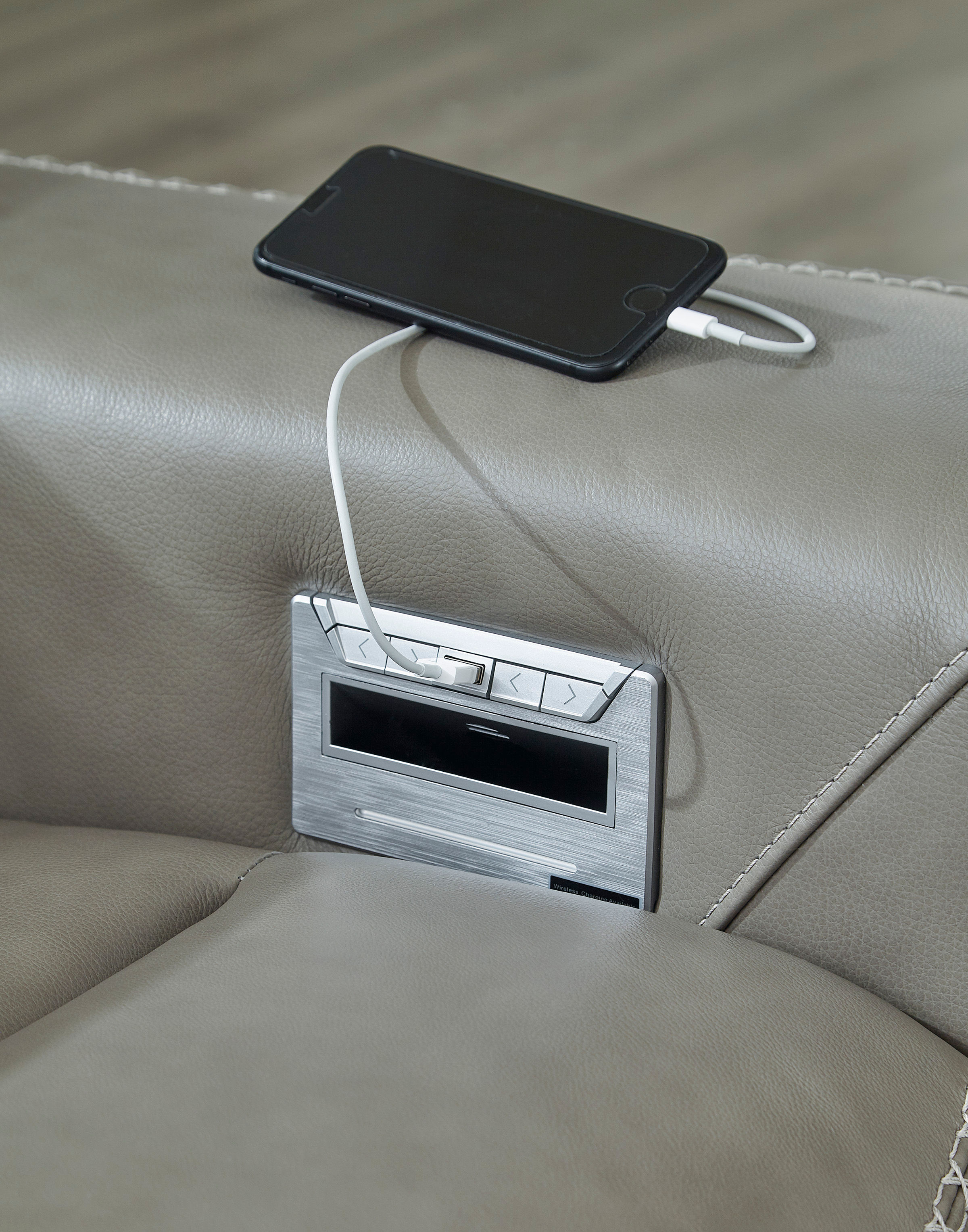 Truly putting high design into recline, the Correze power reclining sectional with gray leather match upholstery proves that just because you’re a recliner doesn’t mean you have to look like one. Deceptively beautiful, its ultra clean-lined aesthetic is as cool and contemporary as they come. Low-profile back has a super swank look. When you need more support for your head and neck, the press of a button engages the Easy View™ power adjustable headrest, designed to let you lean back and still have a primo view of the TV. Ever-so-subtle curves and stunning stitching perfect the aesthetic.