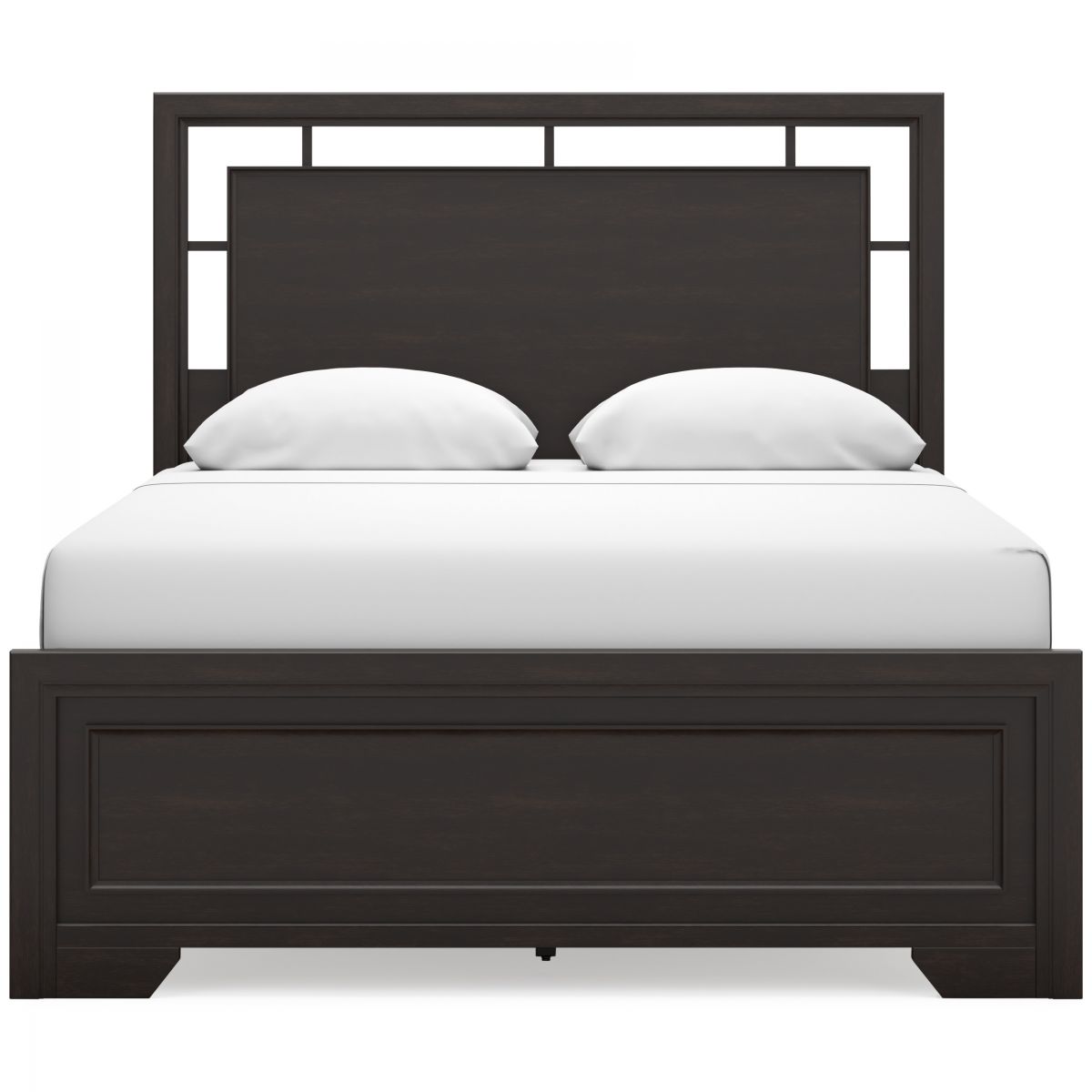 If you like the idea of a richly versatile transitional look that feels fresh and contemporary—with a timeless sensibility—then feast your eyes on the Covetown queen panel bed. The modern headboard's floating panel design blends with the classic-inspired picture frame footboard to create a stunning look that's neither too stuffy nor too trendy. Such a refined way to wake up your bedroom style.