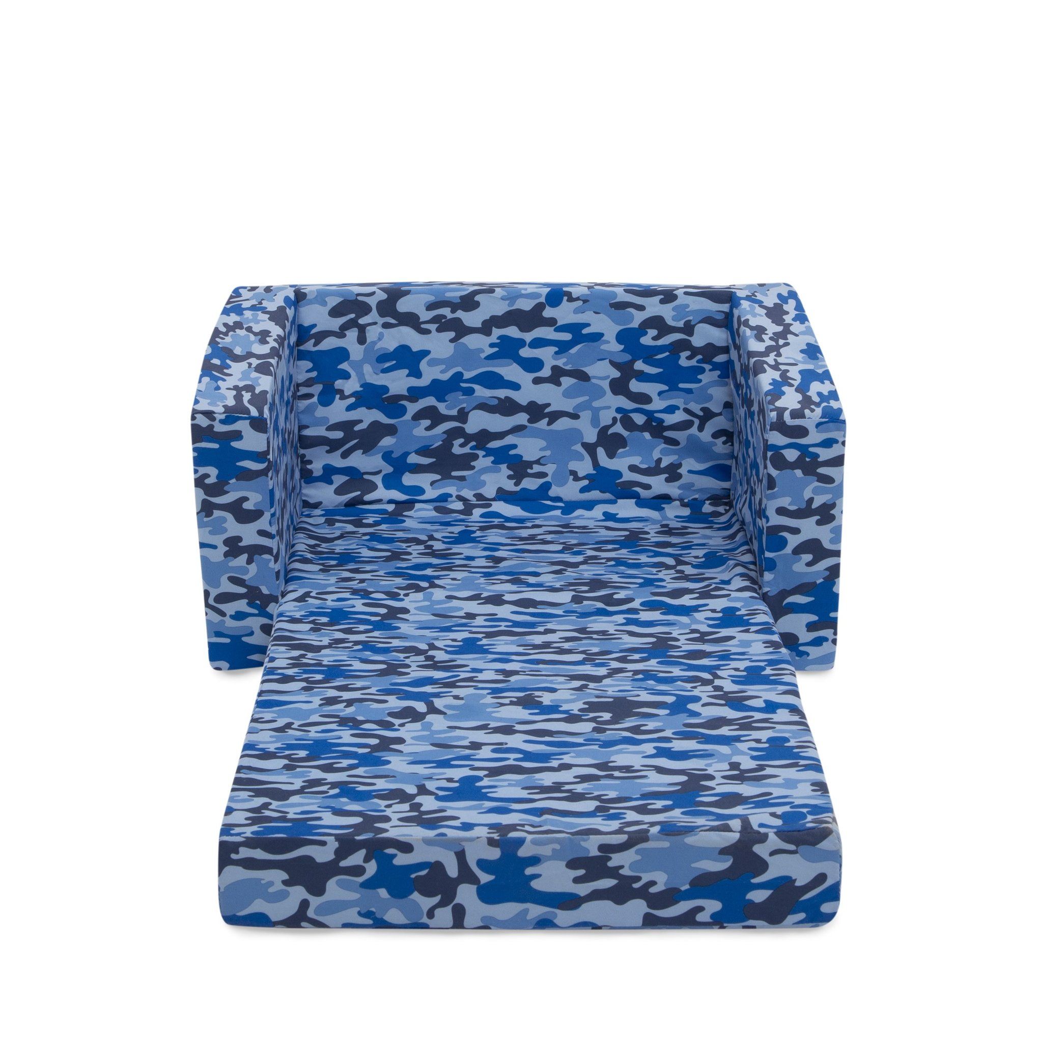 The Cozee 2-in-1 Flip-Out Convertible Chair to Lounger by Delta Children is a cozy chair by day, laid-back lounger by night. This convertible seat easily flips open to reveal multiple ways for your child to relax--they’ll love to sit and read or watch their favorite movies on the chair but when it’s time for a nap, this seat folds out into a comfy sleeper bed. Big enough to fit two small kids comfortably in sofa mode, it’s light enough to move around the house and is ideal for your children to share during playtime or sleepovers. The super-soft slipcover with easy-to-reach side pocket is treated with a Scotchgard stain release finish to resist stains, ensuring the chair looks beautiful for years to come! The supportive foam construction will keep its shape and provides all-day comfort. Designed to ship in a super-small box, this lightweight foam kids’ chair and lounger may take up to 24 hours to fully expand once unboxed. Machine-washable slipcover zips off for easy cleaning. Recommended for ages 18 months+.