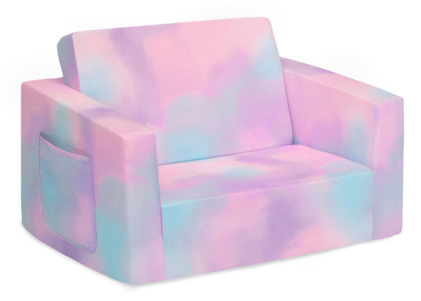 The Cozee 2-in-1 Flip-Out Convertible Chair to Lounger by Delta Children is a cozy chair by day, laid-back lounger by night. This convertible seat easily flips open to reveal multiple ways for your child to relax--they’ll love to sit and read or watch their favorite movies on the chair but when it’s time for a nap, this seat folds out into a comfy sleeper bed. Big enough to fit two small kids comfortably in sofa mode, it’s light enough to move around the house and is ideal for your children to share during playtime or sleepovers. The super-soft slipcover with easy-to-reach side pocket is treated with a Scotchgard stain release finish to resist stains, ensuring the chair looks beautiful for years to come! The supportive foam construction will keep its shape and provides all-day comfort. Designed to ship in a super-small box, this lightweight foam kids’ chair and lounger may take up to 24 hours to fully expand once unboxed. Machine-washable slipcover zips off for easy cleaning. Recommended for ages 18 months+.