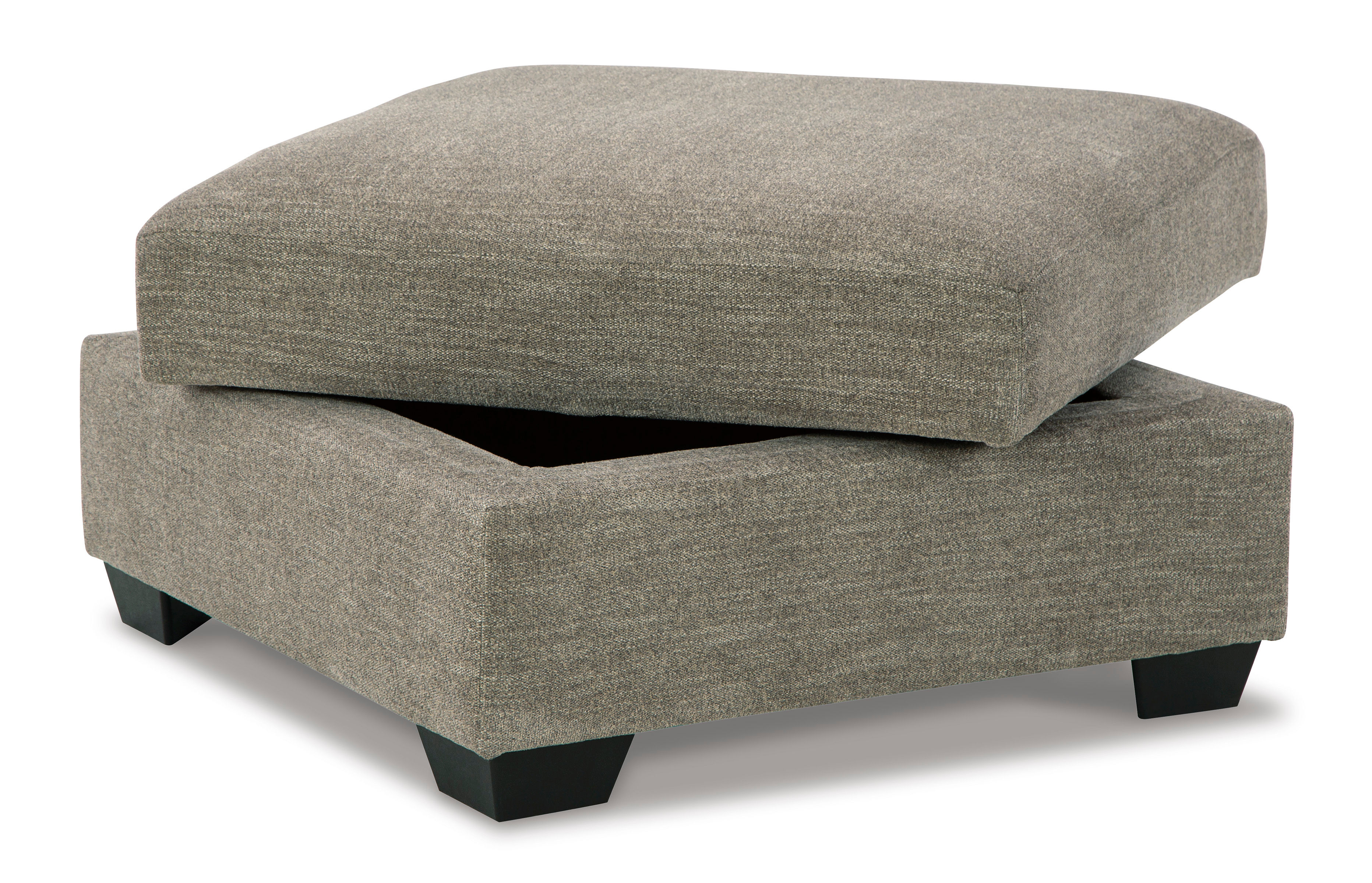 The Creswell ottoman adds a richly neutral aspect to your living space. This versatile companion piece offers ample storage space plus a tabletop with cup holders on the reverse side of the removable cushion.