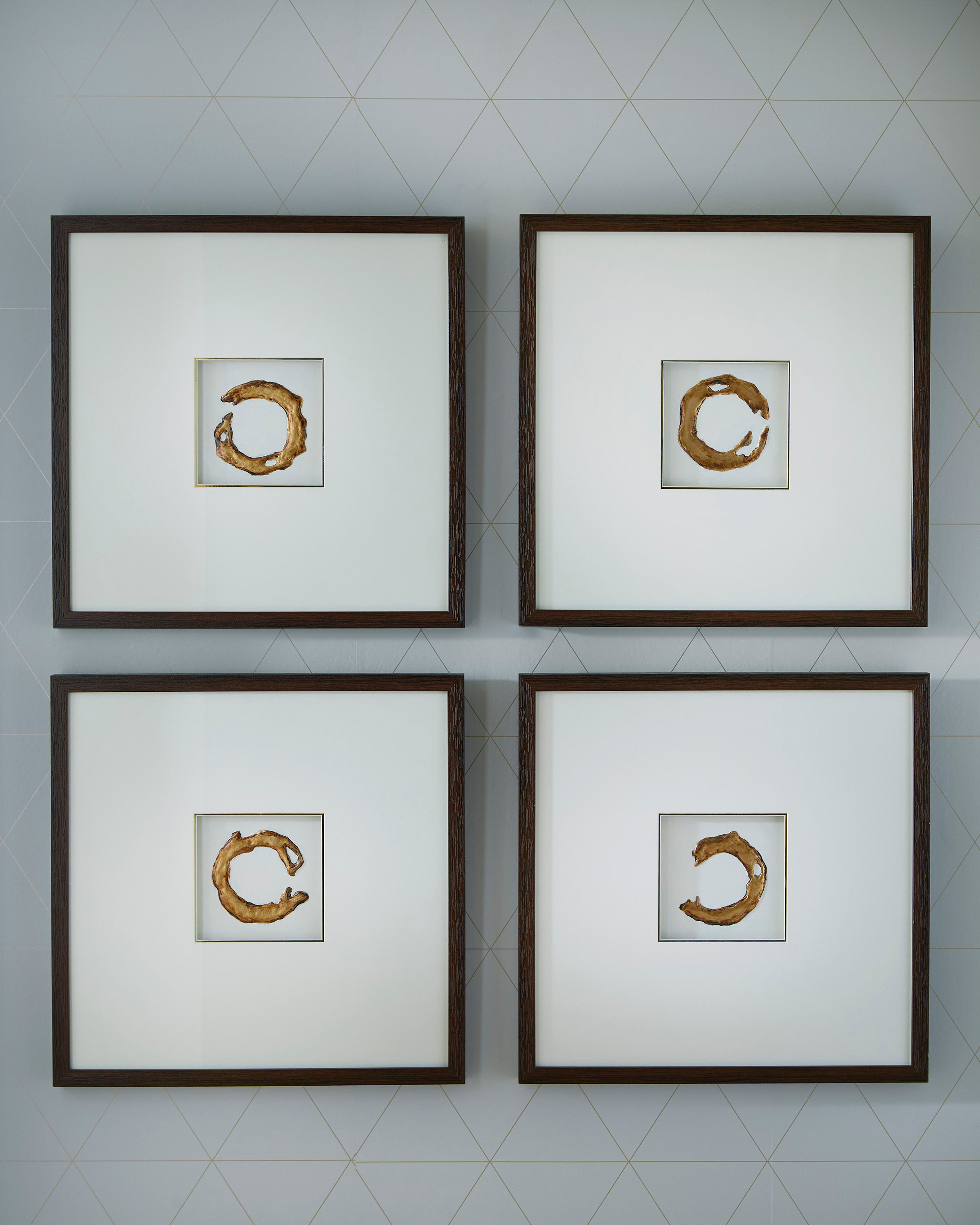 Taking an abstract approach to neutrals, this wall art set seamlessly balances an elevated feel with inviting style. The white and gold images are enhanced with hand painted embellishments, and each piece is beautifully framed in a dark brown shadowbox. Double matting further highlights the curated feel of this collection.