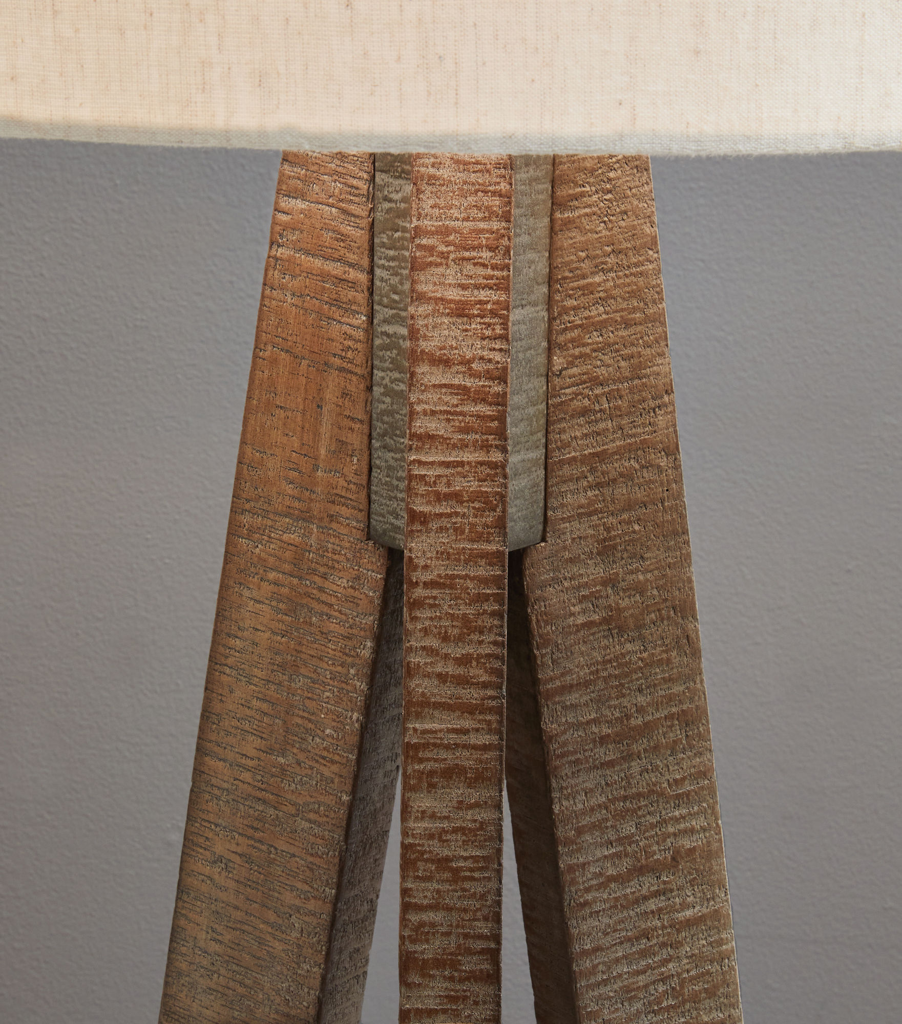 The inherent beauty of rough sawn wood makes the Dallson floor lamp a natural standout. Clean, cool and contemporary, the lamp's open tripod design is beautifully on trend.
