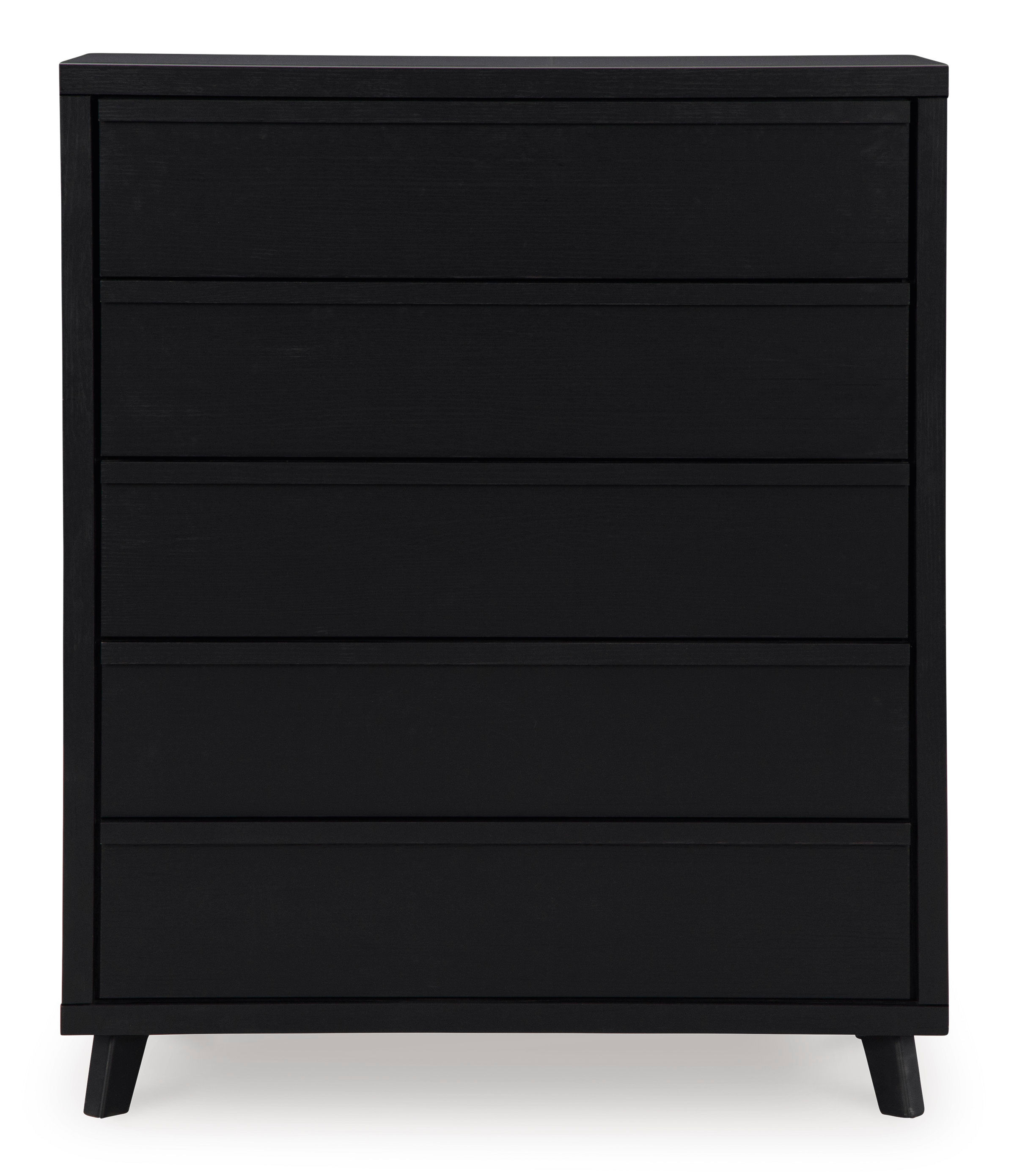 Sophisticated style for the savvy shopper. The Danziar chest of drawers prioritizes affordable, on-trend design. Its subtle replicated texture recalls the natural beauty of wood, highlighting the slatted styling. And a matte black finish savvily suits different approaches to modern aesthetics. Mix and match with light and bright hues, or pair with other dark tones for a moody look.